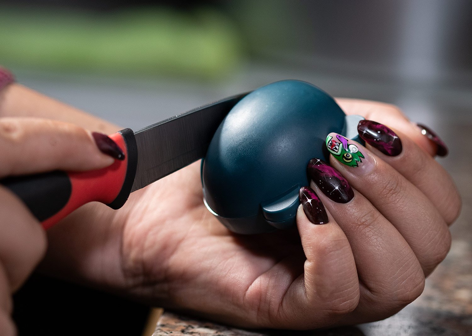 Accesorios de CocinaAfilador de cuchillos manual con forma de rana, contiene piedra para afilar cuchillos. Puede adherirse a una superficie.