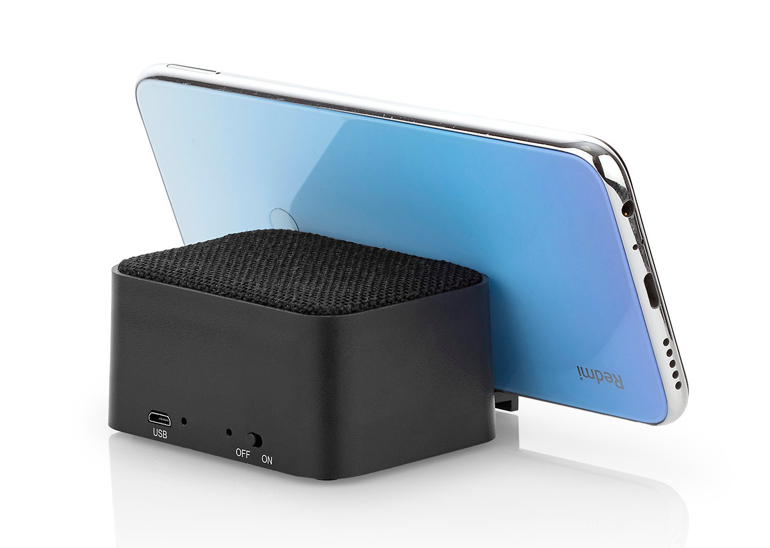AltavozAltavoz Bluetooth versión 5.0 con compartimiento desplegable para usar como Holder de celular. Batería 3.7V/ 2000 MAH. Frecuencia 30 KHz. Potencia de salida 3W. Switch de encendido/apagado. Incluye cable USB para carga.