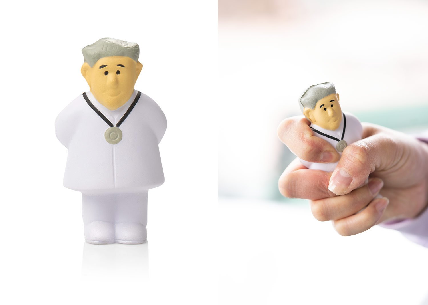 Artículo antiestrés con forma de doctor para aliviar la tensión.