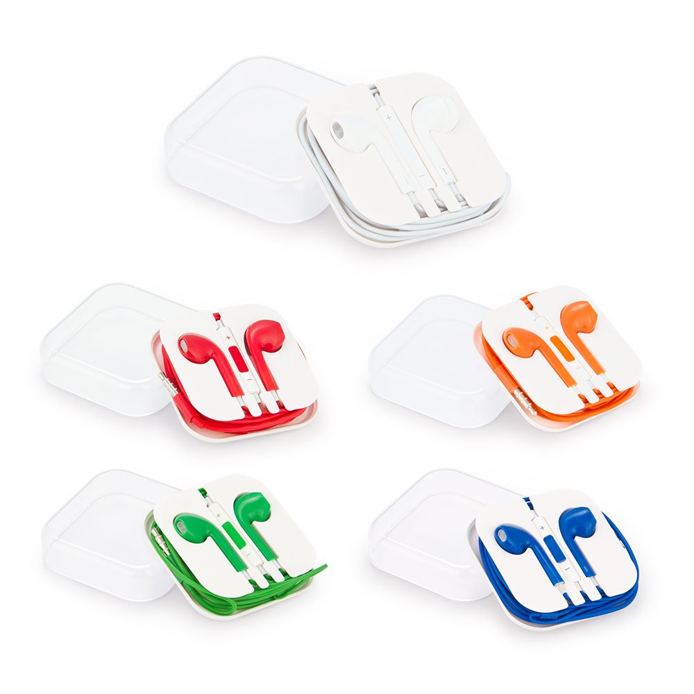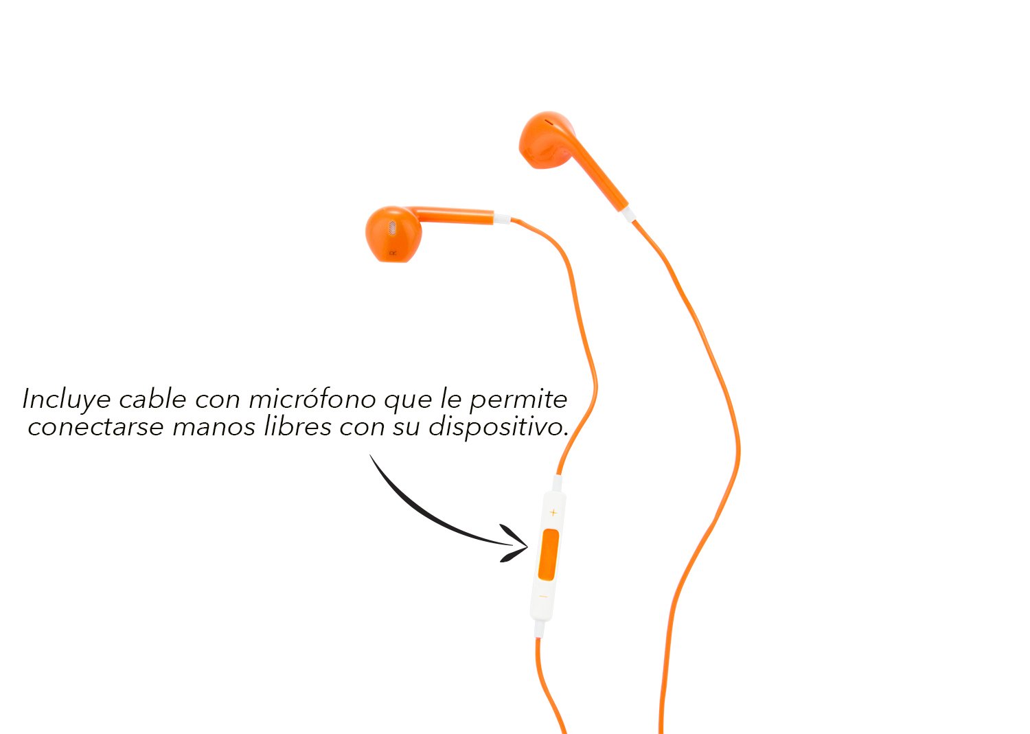 Audífonos intraaurales alámbricos con control de volumen y micrófono para utilizar como manos libres, auriculares tipo botón de 10 mm, respuesta de frecuencia 20 Hz – 20 KHz, impedancia: 32 Ohms, Incluye estuche plástico. Cable estándar 3,5 mm, longitud del cable 1,10 m.