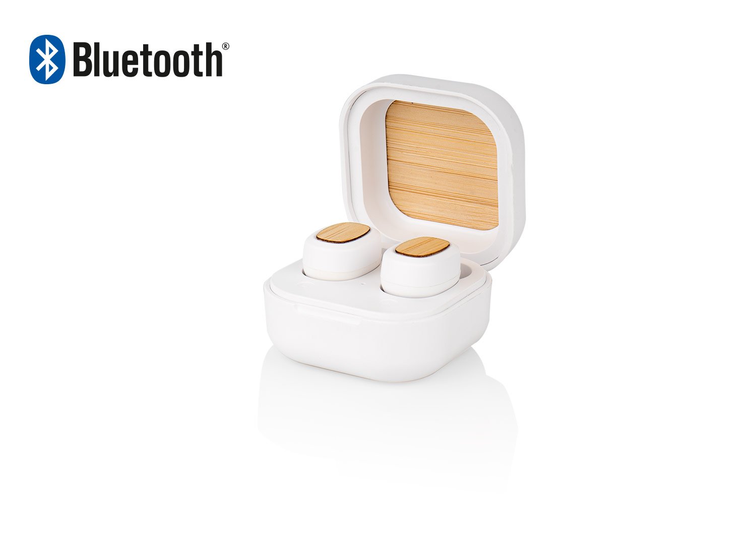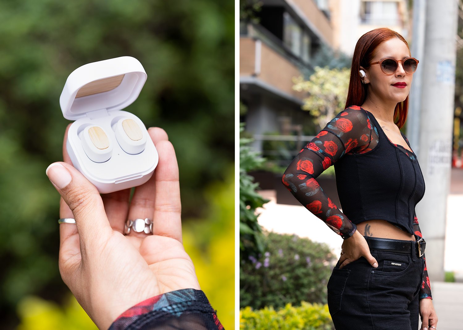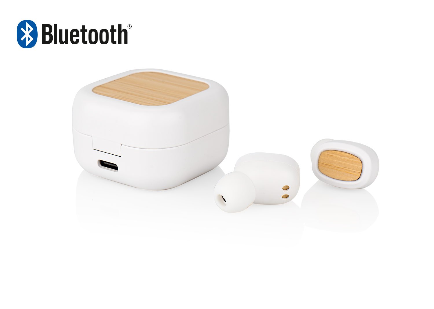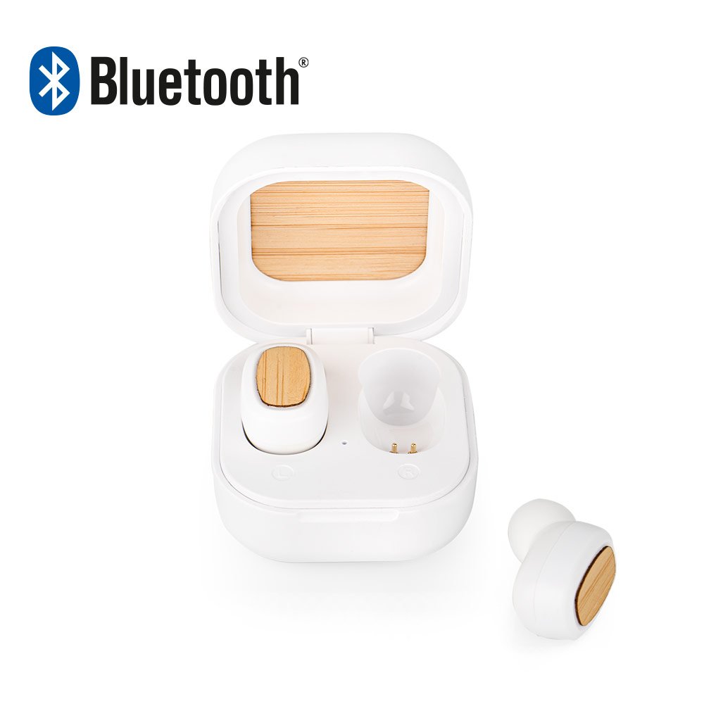 BambúAudífonos Bluetooth 5.0 con diseño ergonómico. Incluye botón táctil en el auricular que permite controlar las acciones con facilidad. Posee unabase de carga con diseño a juego y cable Tipo-C incluido.