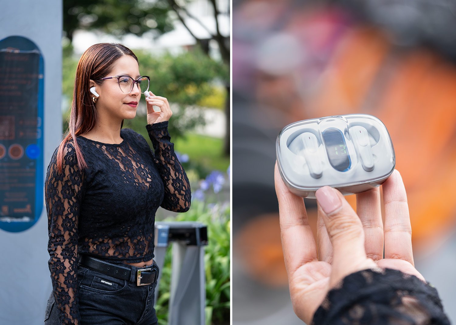 AudífonosAudífonos Bluetooth 5.3 con diseño moderno y estuche de carga con iluminación. Alcance inalámbrico de hasta 10 metros y tiempo de uso aproximado de 3 horas. Función de manos libres incluida para mayor comodidad en llamadas.