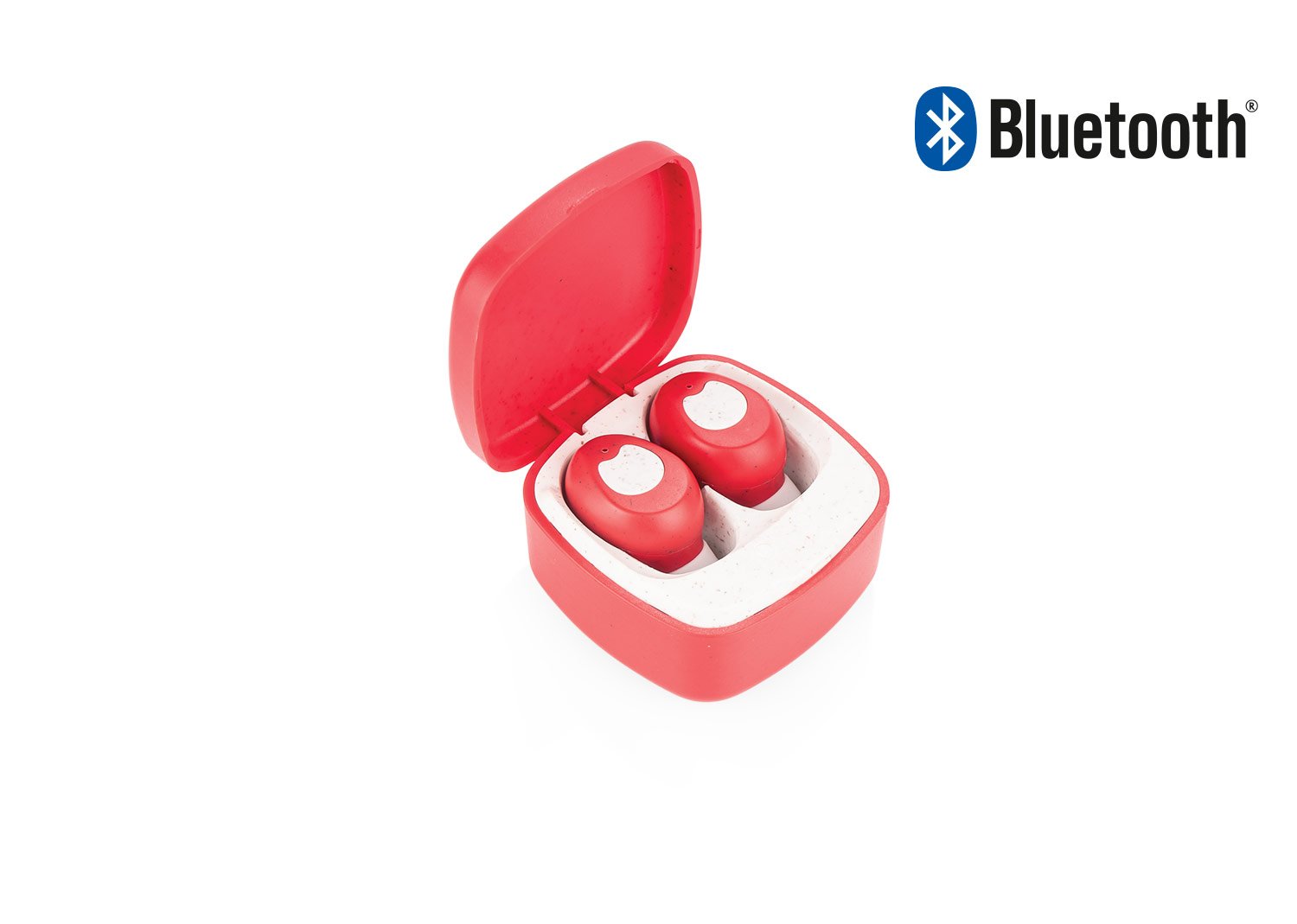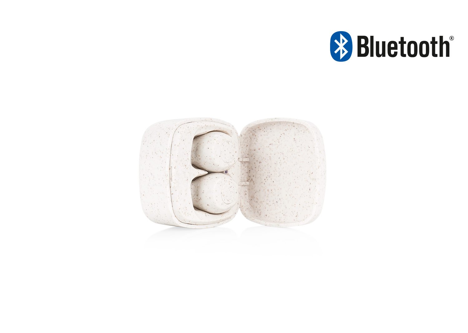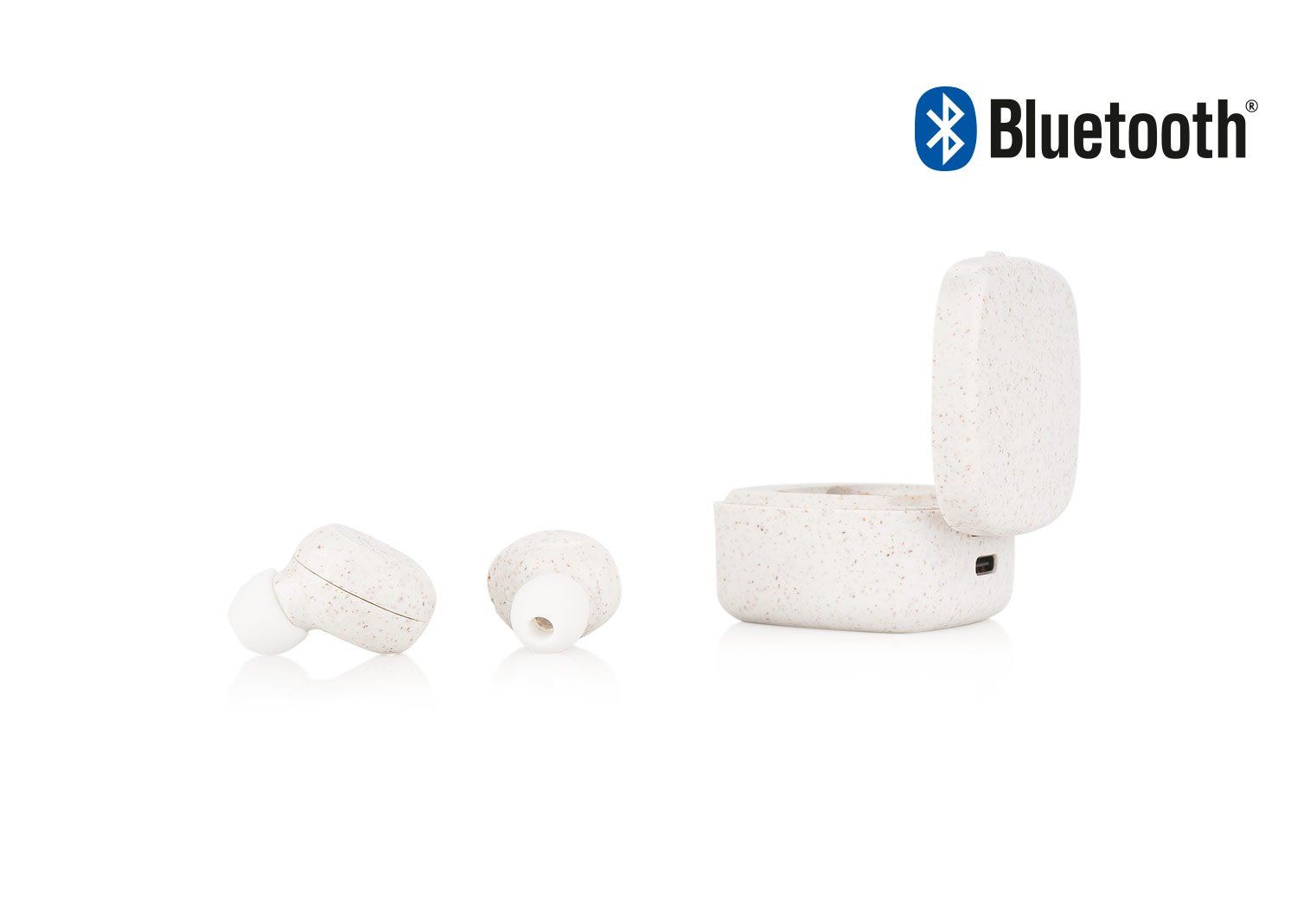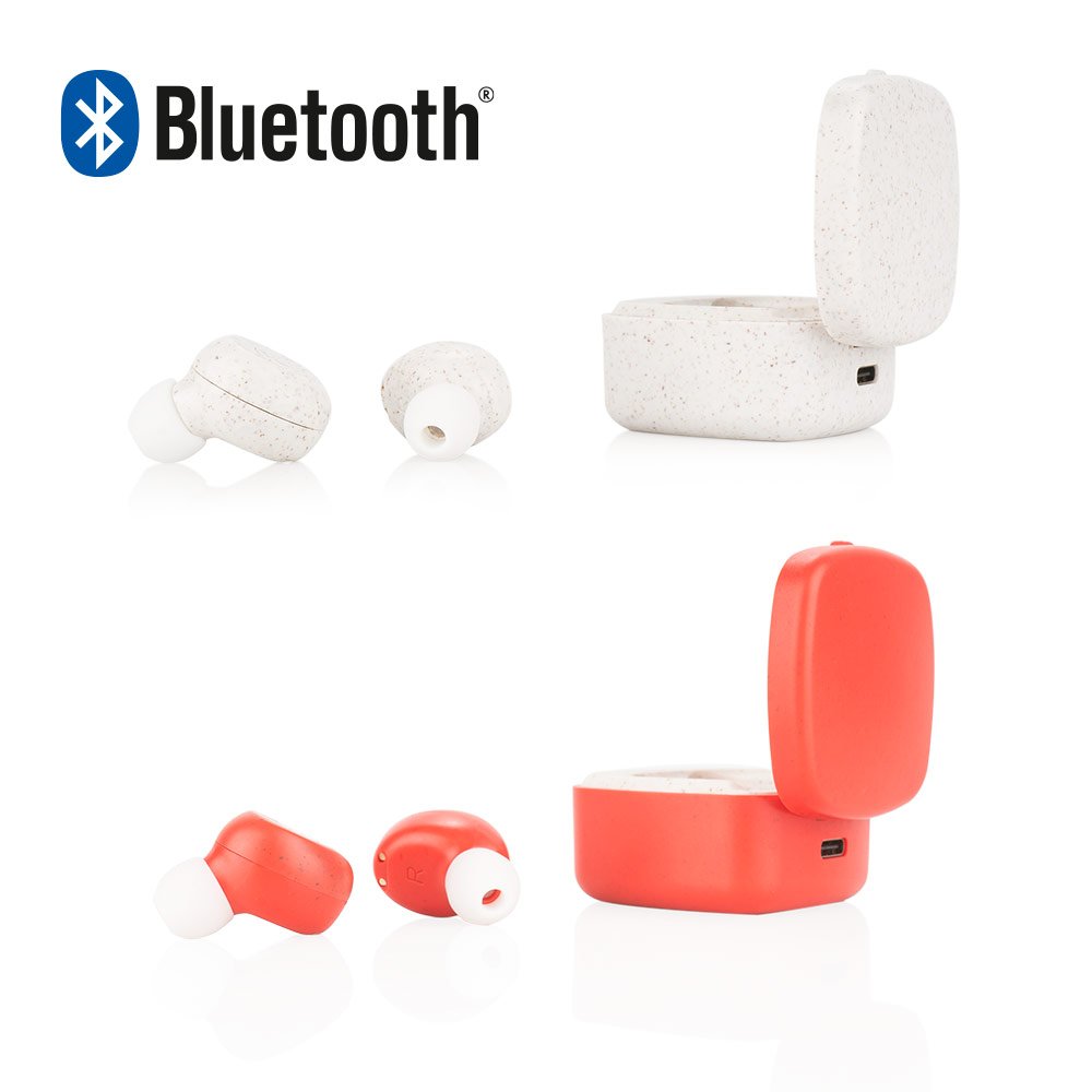 AudífonosAudífonos Bluetooth 5.1 fabricados con paja de trigo, un material sostenible y amigable con el medio ambiente. Incluyen estuche de carga con batería de polímero de litio de 200 mAh. Ofrecen hasta 4 horas de uso continuo y función de manos libres. Voltaje de carga: 5 V. Diseño compacto y ecológico, ideal para el día a día.