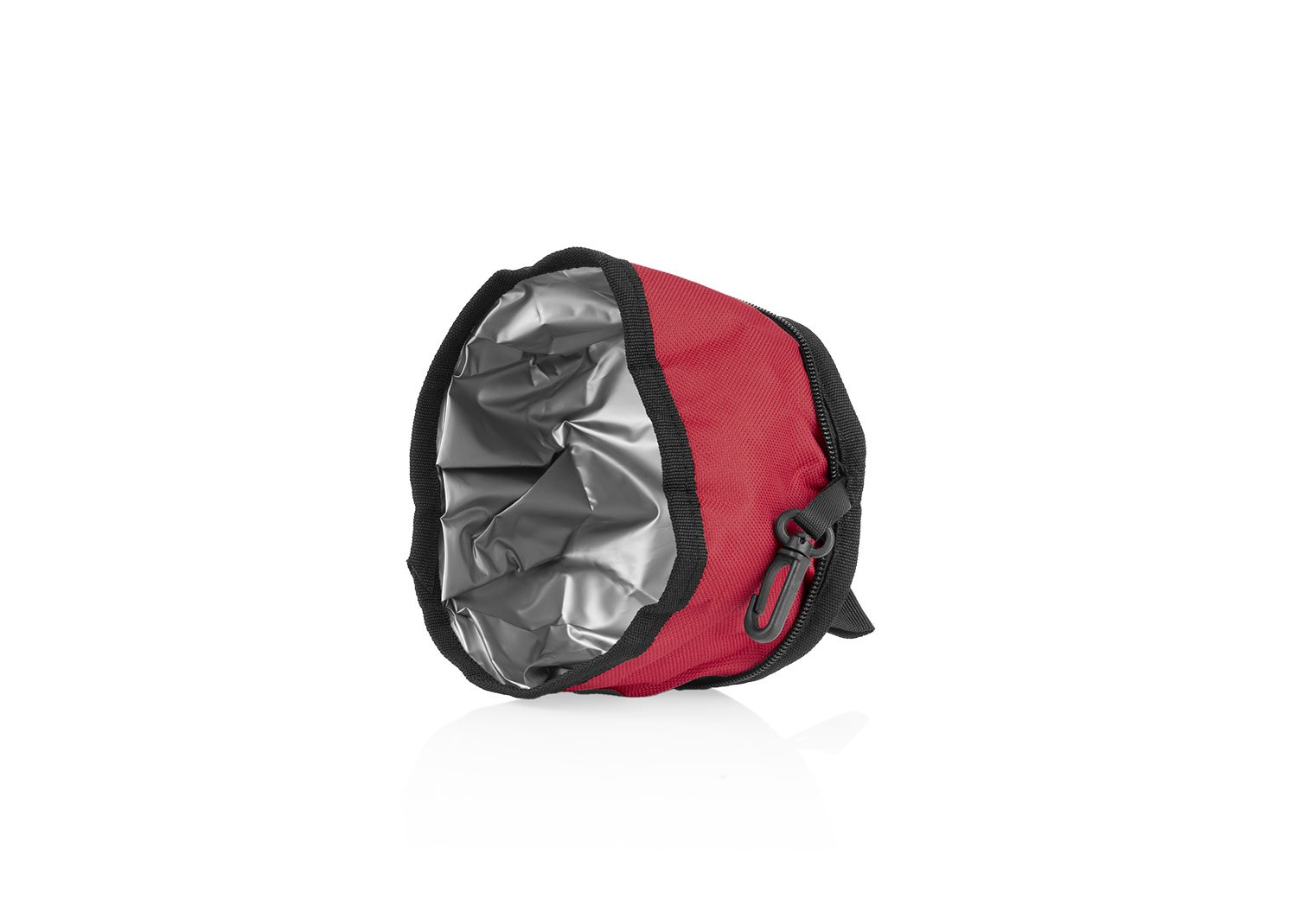 Un recipiente práctico para llevar a los paseos con tu mascota y alimentarlo en cualquier momento. Fácil de guardar. Al estar hecho de tela es fácil de lavar y su gancho permite transportarlo de manera sencilla.