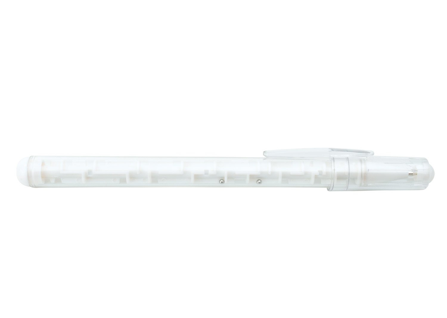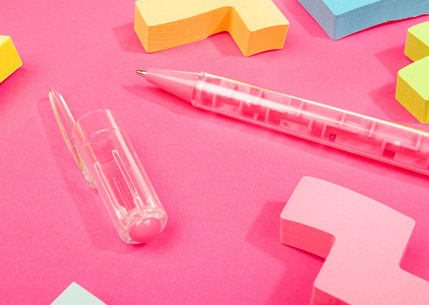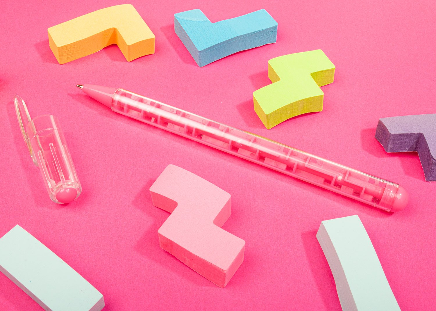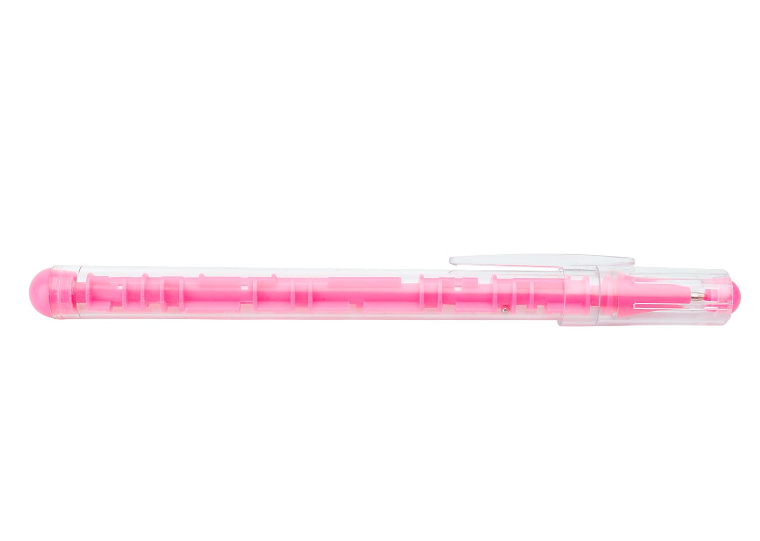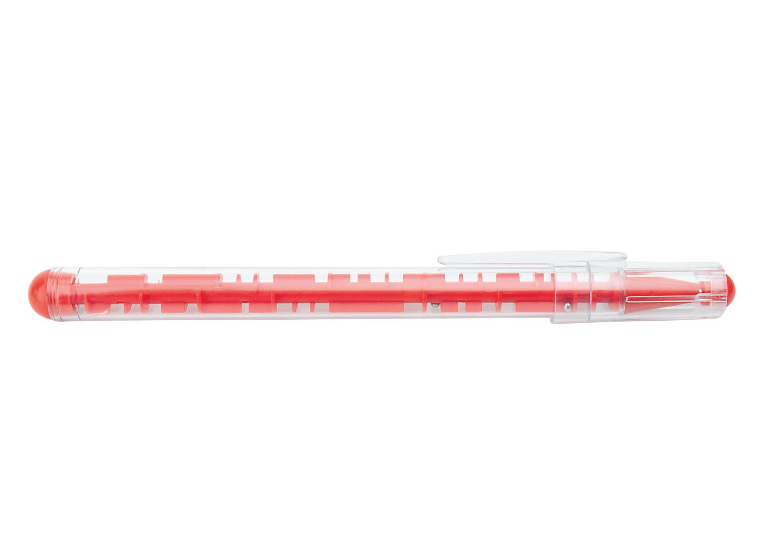 Bolígrafo plástico con tapa, en la parte interna tiene un jueego para disfrutar mientras se utiliza (Bolígrafo/Esfero)