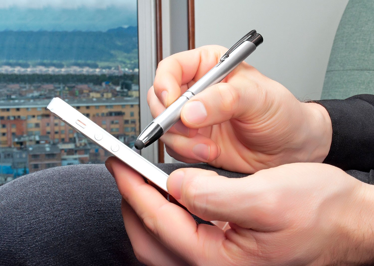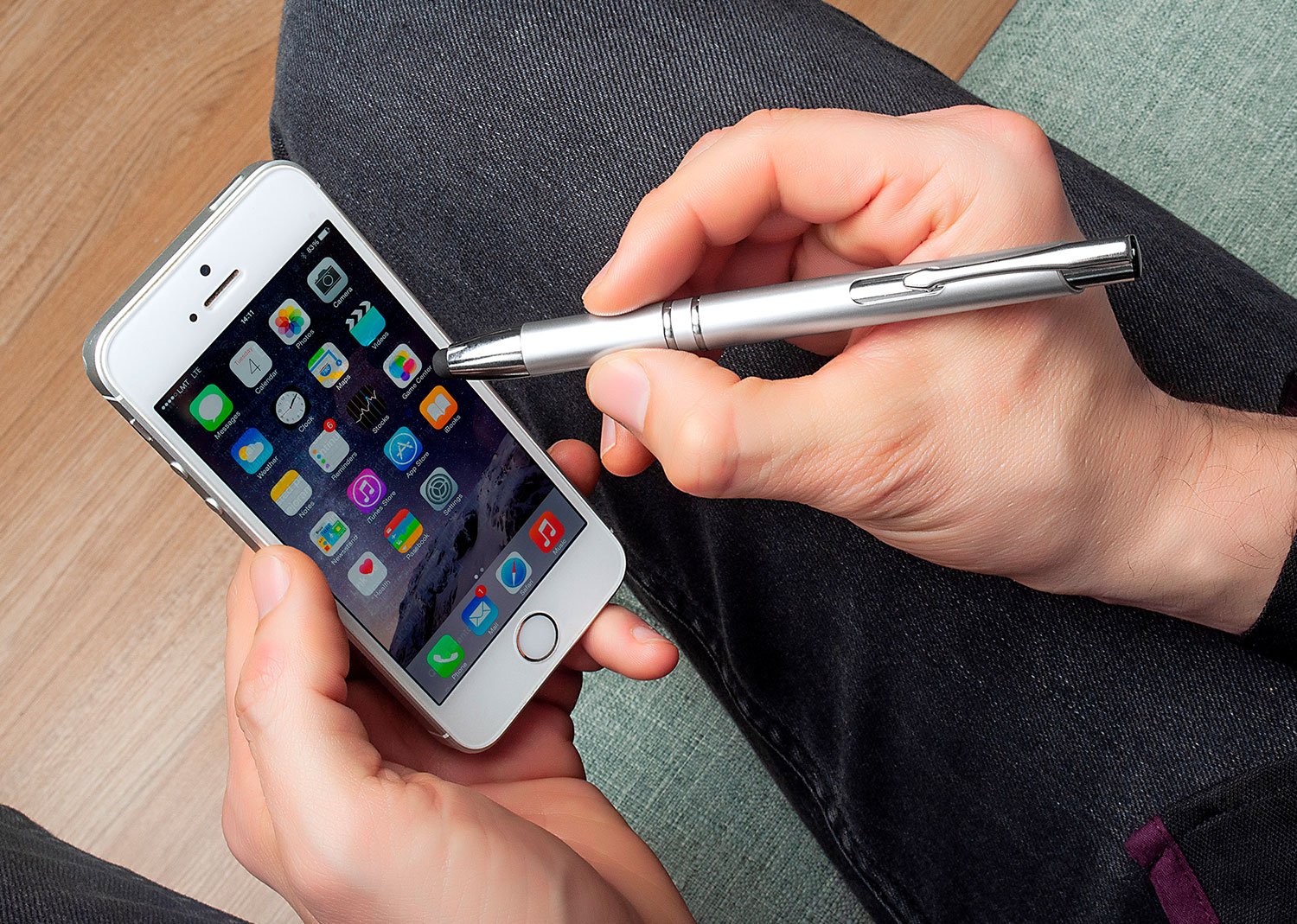 Bolígrafo retráctil con Touch en la punta para pantallas táctiles. (Bolígrafo/Esfero)