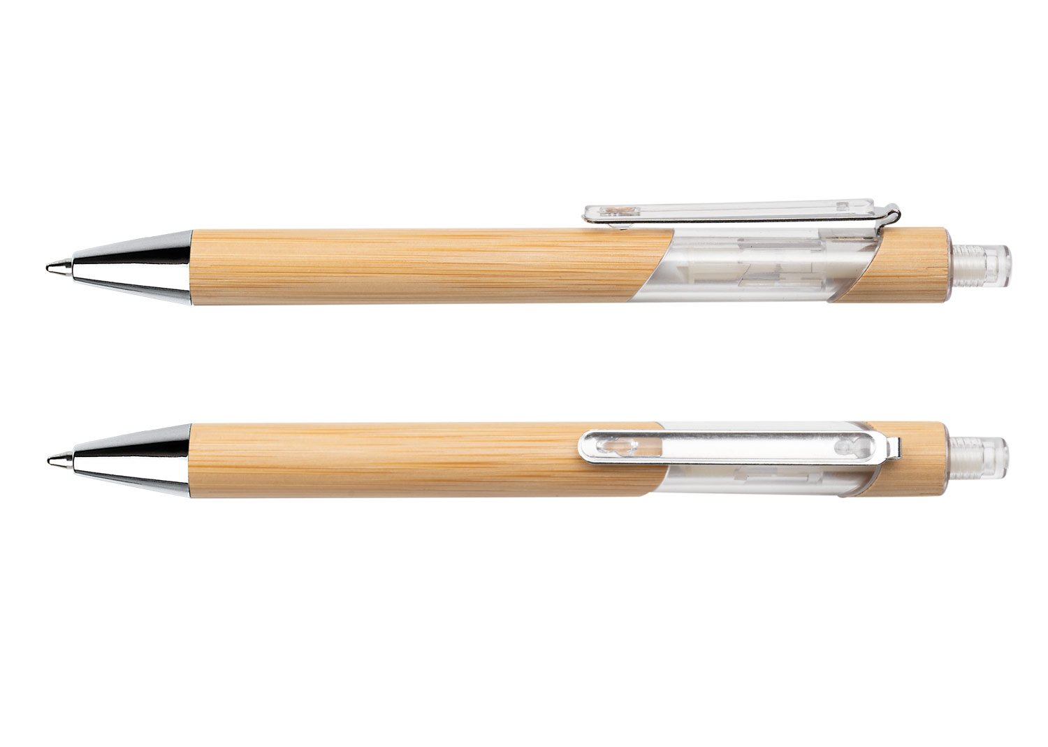 BambúBolígrafo ecológico de bambú con sistema de apertura retráctil gracias a la combinación con el plástico transparente su diseño es más llamativo. (Bolígrafo/Esfero)