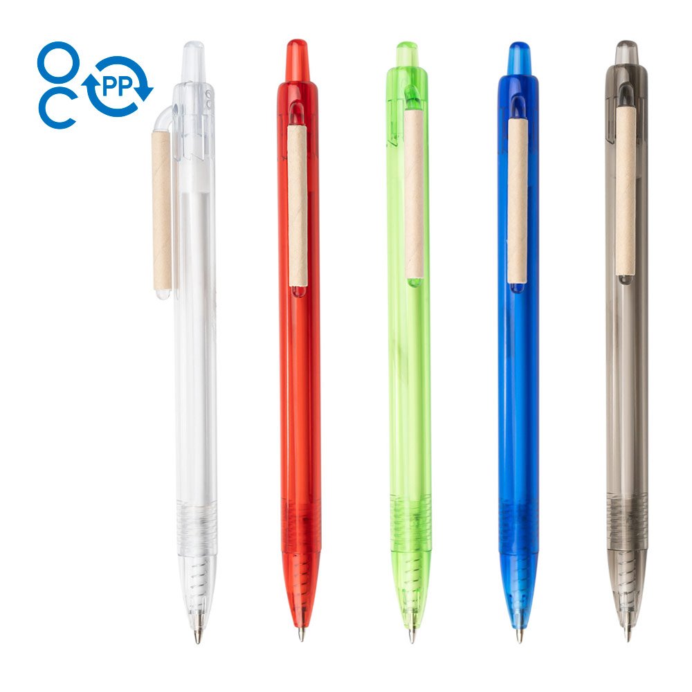 Bolígrafo elaborado en plástico PP recuperado del océano, con clip en cartón reciclado y sistema retráctil. (Bolígrafo/Esfero)