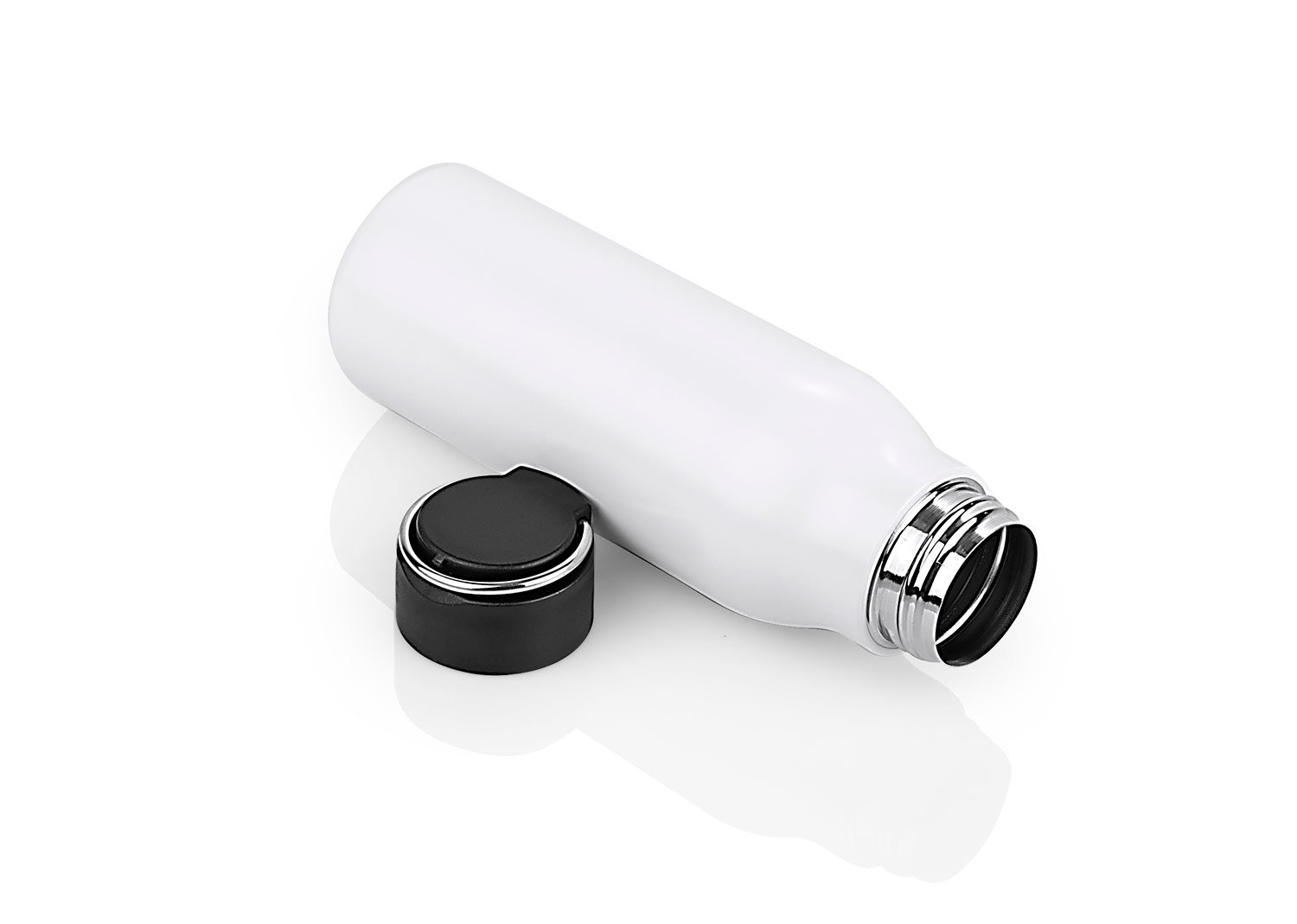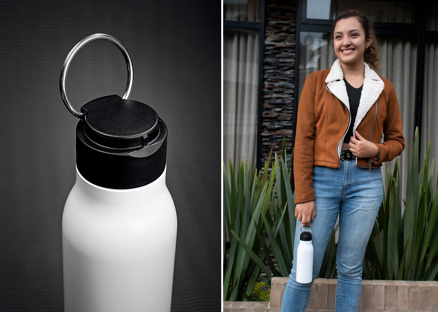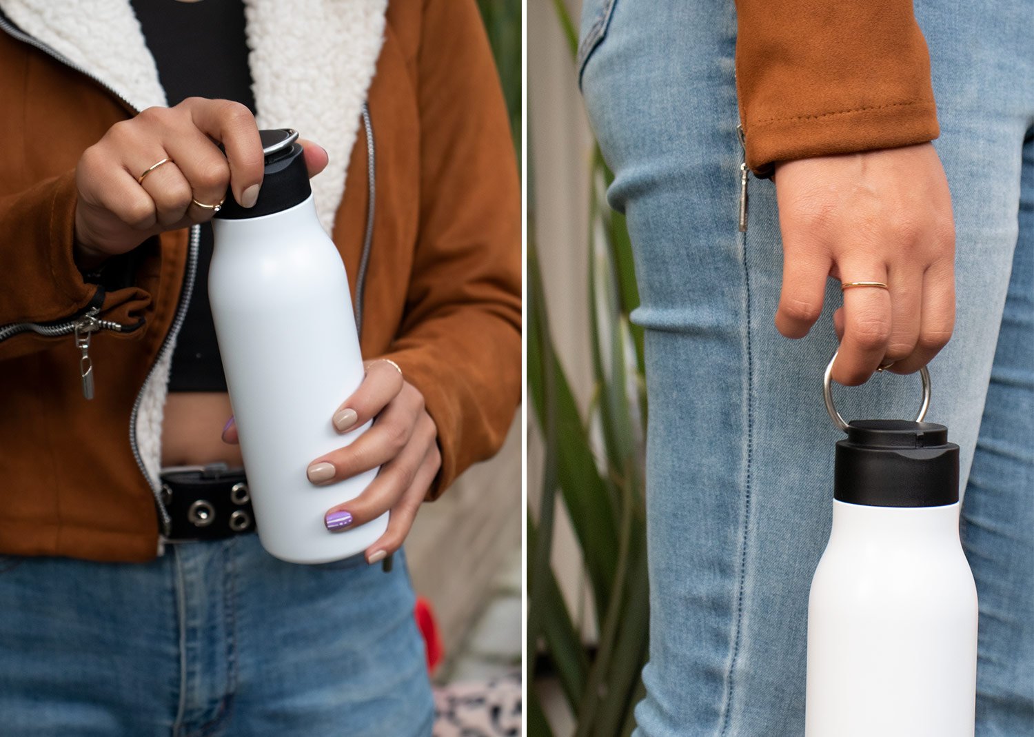 Botellas en AceroBotella fabricada en acero inoxidable, equipada con tapa de cierre giratorio y gancho incorporado que facilita su transporte. Su diseño resistente y funcional la hace adecuada para uso diario, ideal para mantener hidratación en movimiento. Capacidad: 650 ml / 22 Oz.