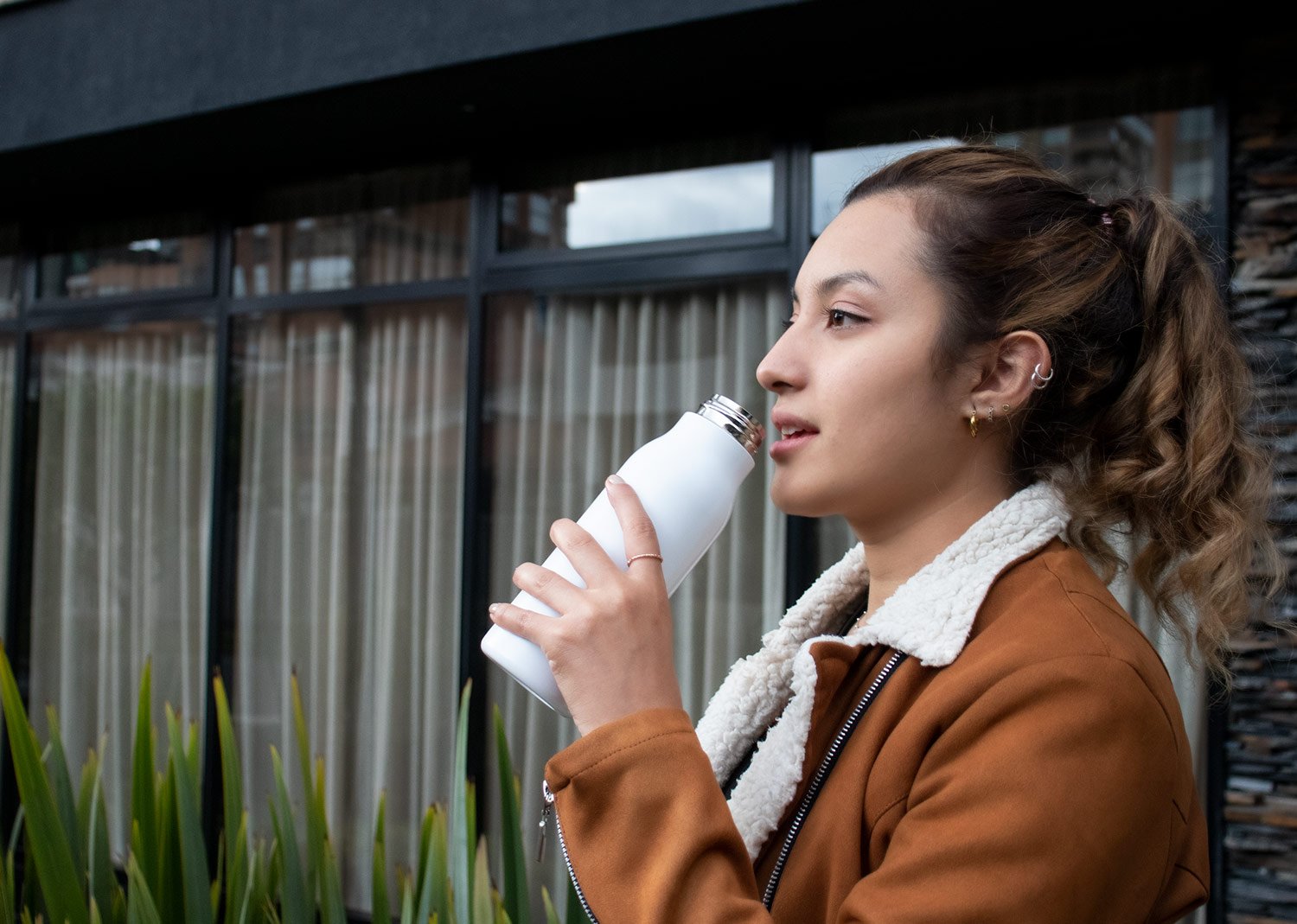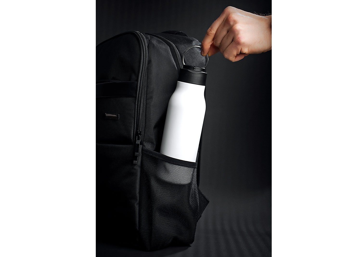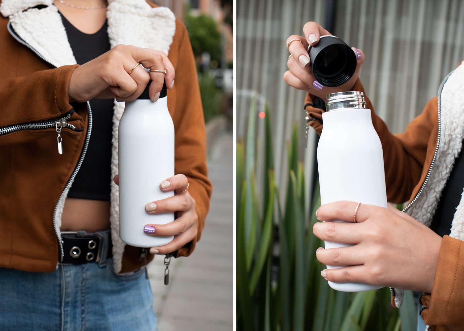 Botellas en AceroBotella fabricada en acero inoxidable, equipada con tapa de cierre giratorio y gancho incorporado que facilita su transporte. Su diseño resistente y funcional la hace adecuada para uso diario, ideal para mantener hidratación en movimiento. Capacidad: 650 ml / 22 Oz.