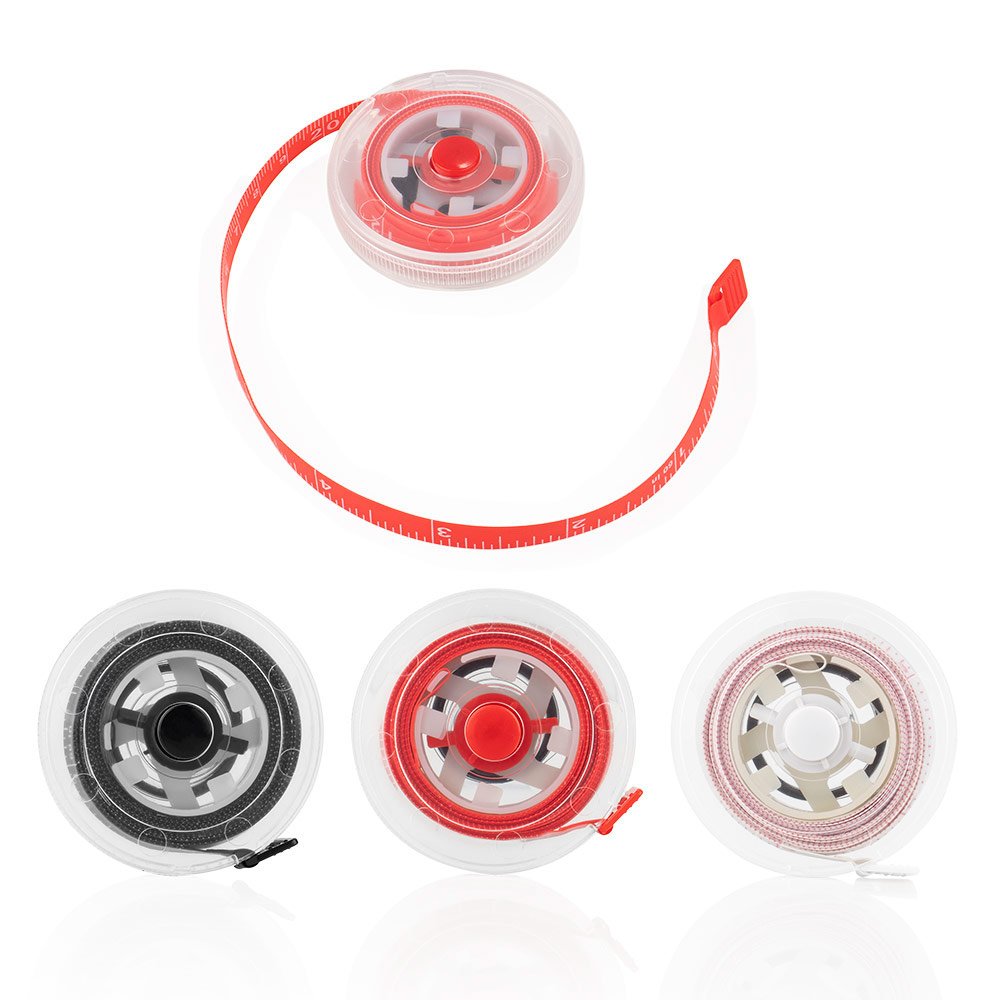 Cintas MétricasEsta cinta métrica retráctil cuenta con una longitud de 150 cm y 60 pulgadas. La medida se mantiene fija en la posición deseada, y al presionar el botón, la cinta se retrae rápidamente. Su diseño compacto y funcional permite realizar mediciones precisas de forma práctica en distintos entornos.