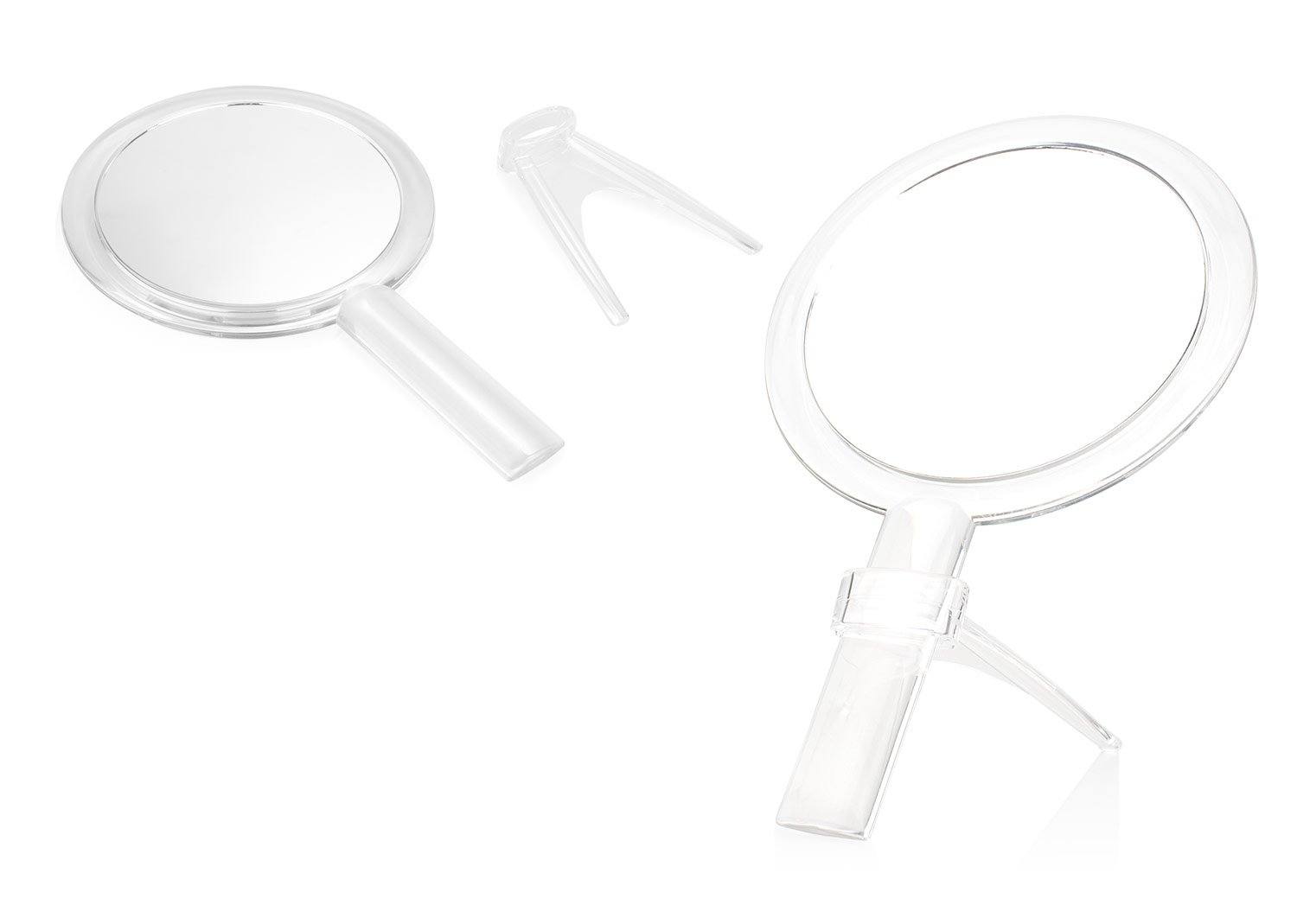 Espejo doble, vista normal y de aumento. Incluye soporte para parar el espejo.