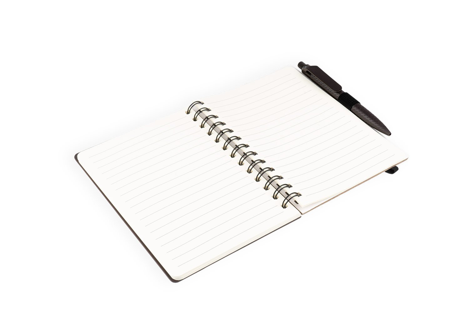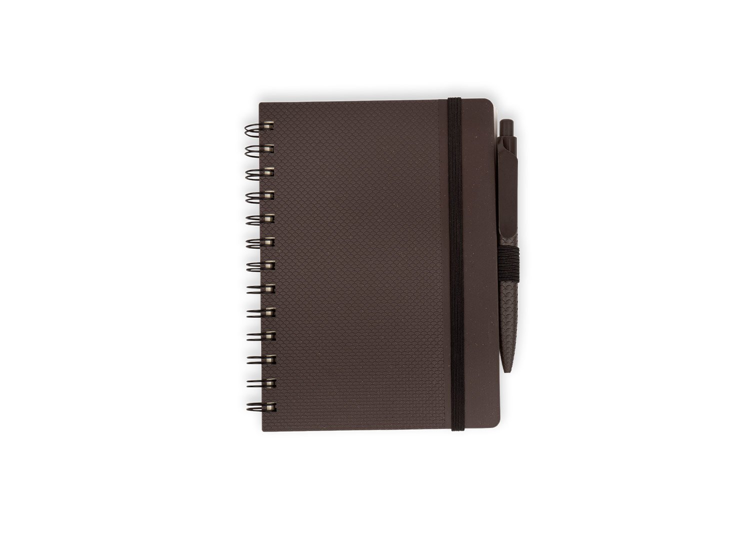 Elaborado de caféLibreta argollada doble O con cubierta dura elaborada en fibra de café, banda elástica de cierre. Contiene 70 hojas rayadas de 70 g/m². El tamaño aproximado de la hoja: A5. Incluye bolígrafo elaborado de fibra de café de sistema retráctil.