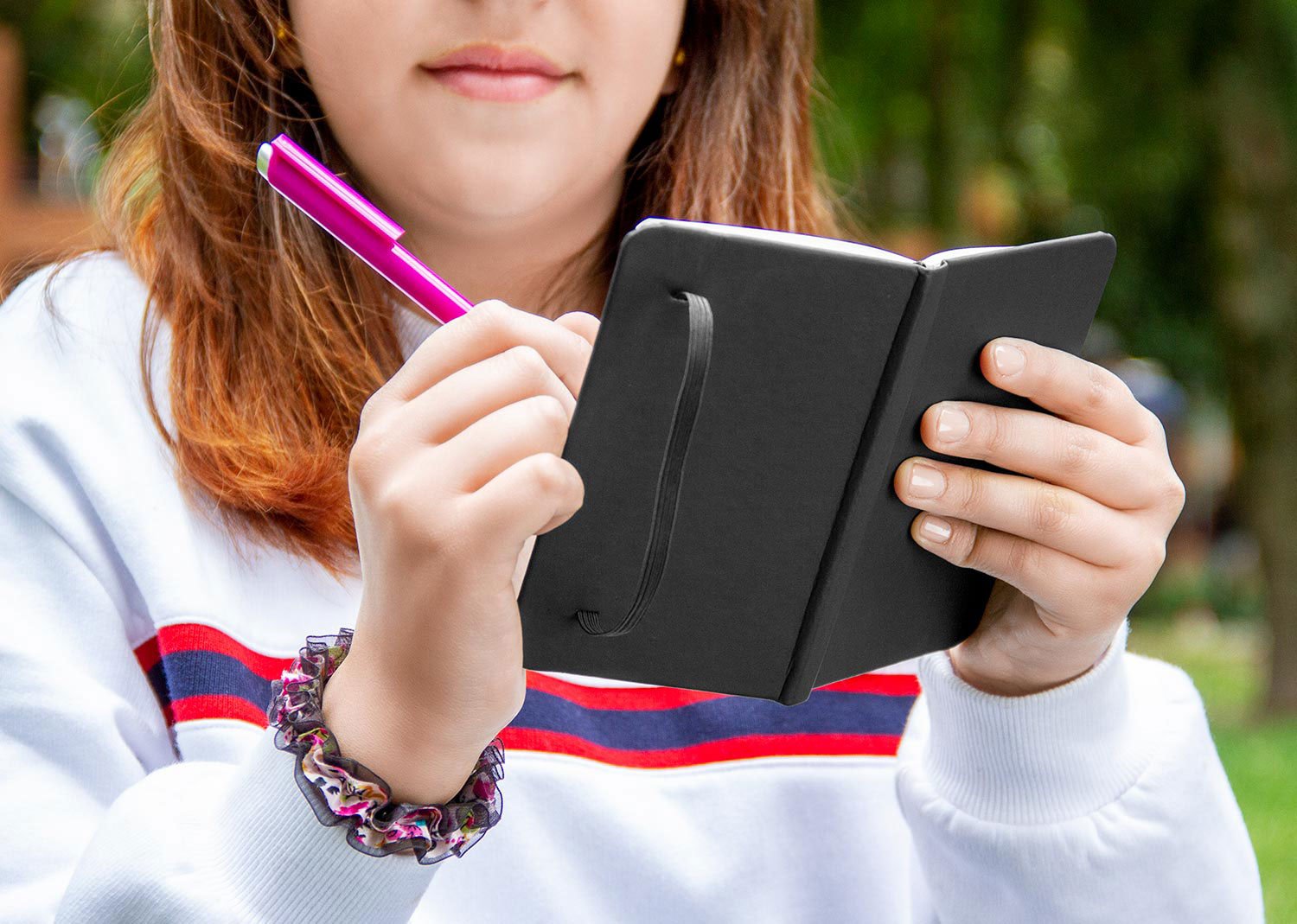 Libreta con cubierta forrada en elegante imitación cuero, que combina estilo y funcionalidad. Cuenta con banda elástica de cierre y cinta marcadora para mantener tus notas siempre organizadas. Incluye 80 hojas blancas de papel de 70 g/m², ideales para escribir con suavidad y precisión. Su tamaño compacto tipo A6 la hace perfecta para llevar a todas partes.