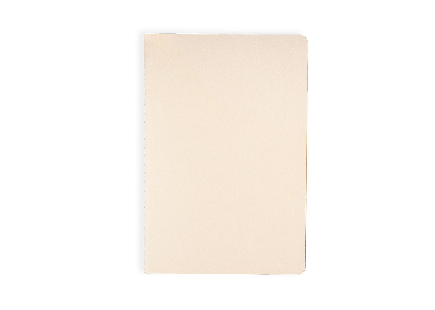 Paja de TrigoCuaderno cosido con cubierta en papel esmaltado. Separador de páginas. Contiene 60 hojas rayadas en papel reciclado. Tamaño aproximado de la hoja: A5.