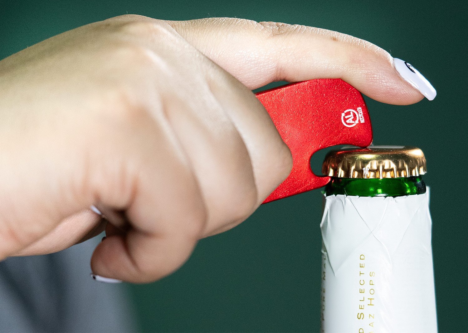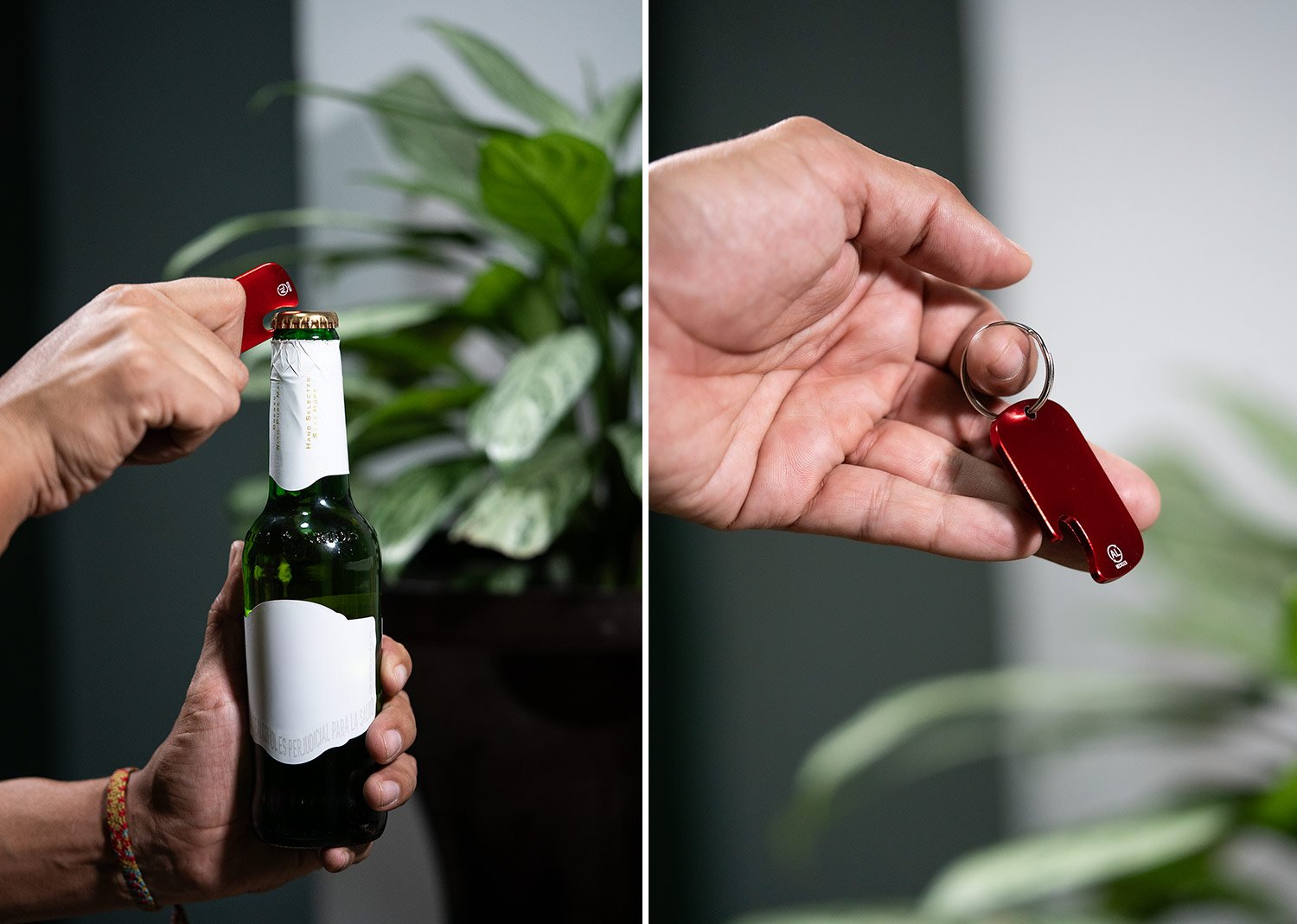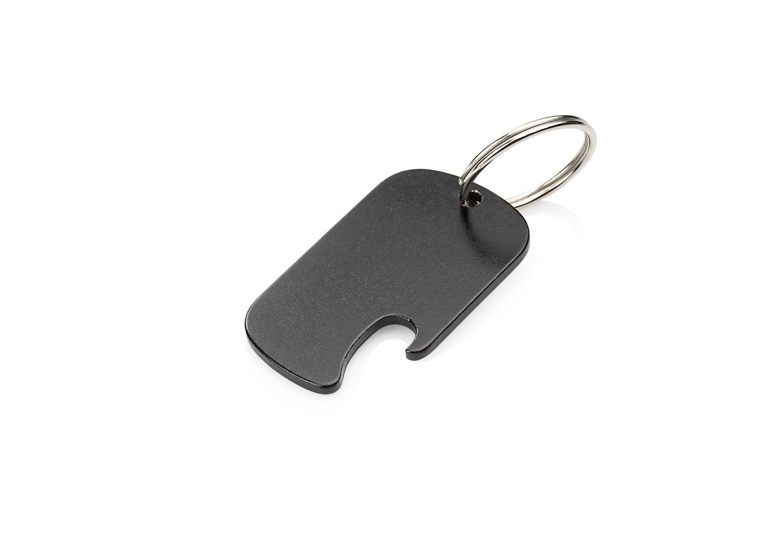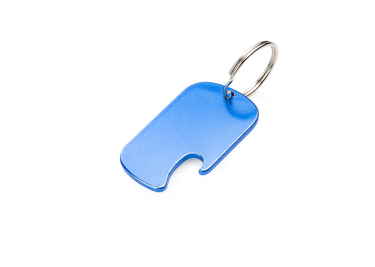 Llavero destapador de aluminio reciclado, con zona amplia para impresión de la marca.