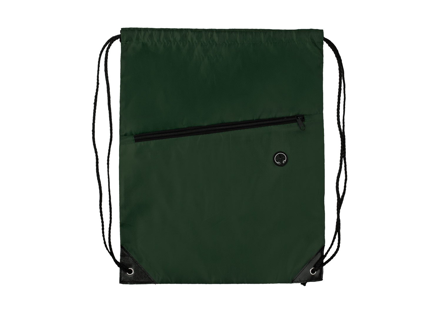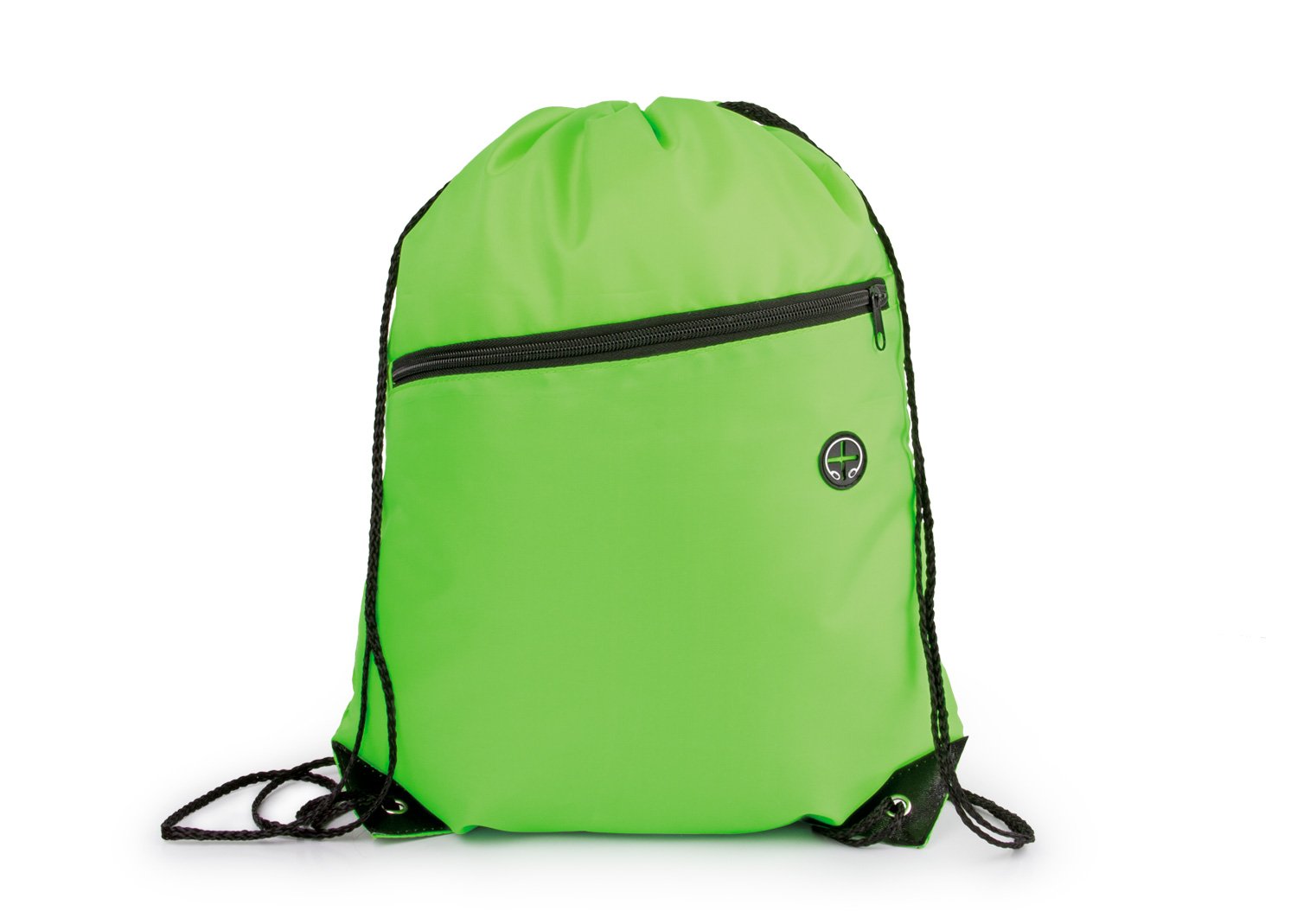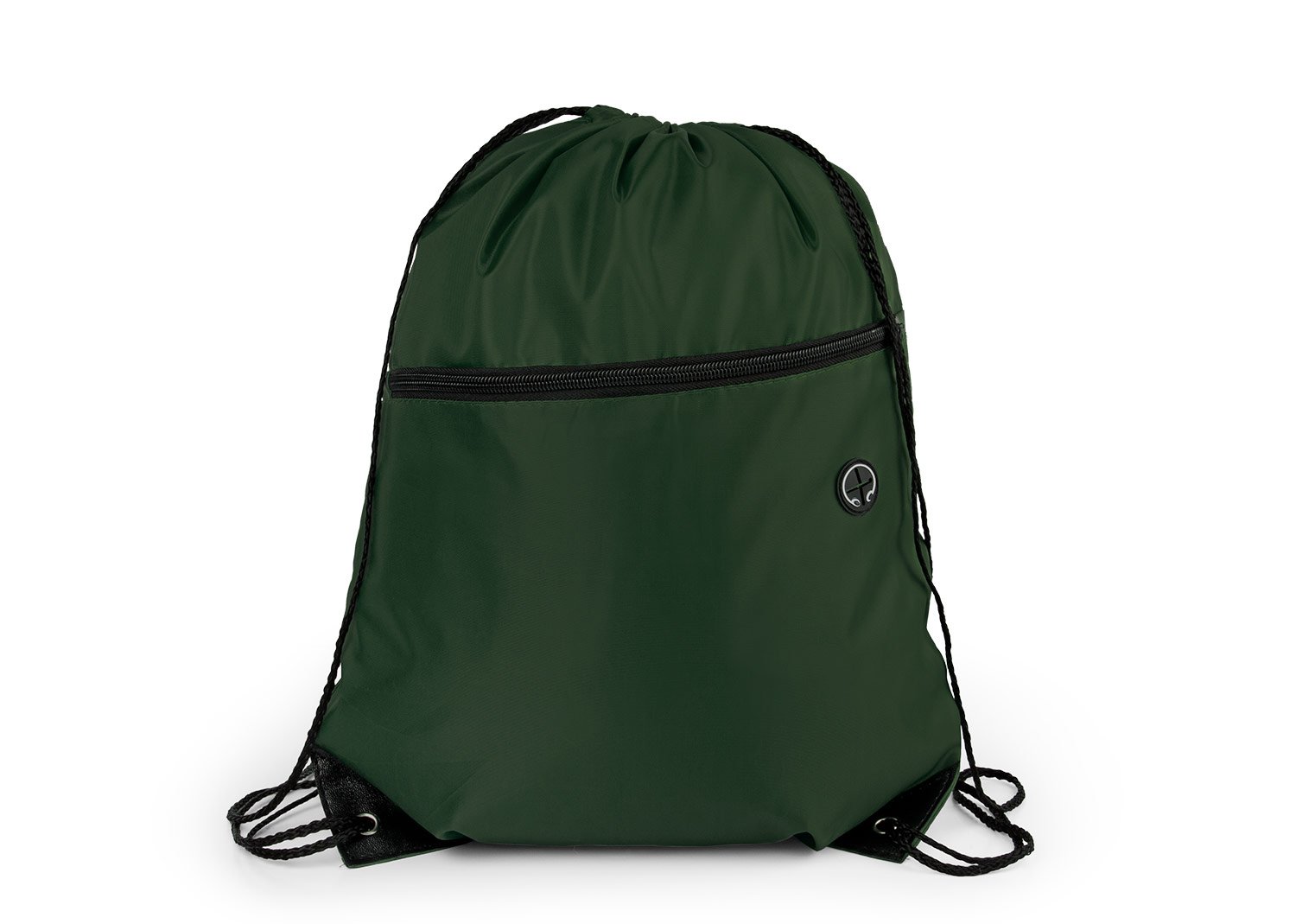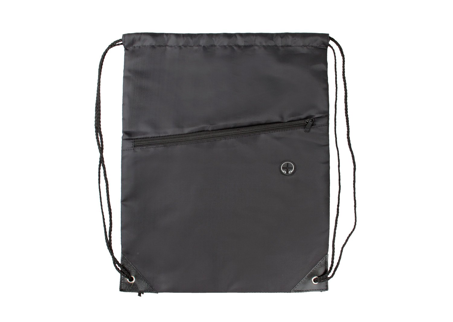 Bolsa con cordón para ajustar y cargar fácilmente. Bolsillo delantero con cremallera y orificio para audífonos. Con refuerzo en las esquinas.