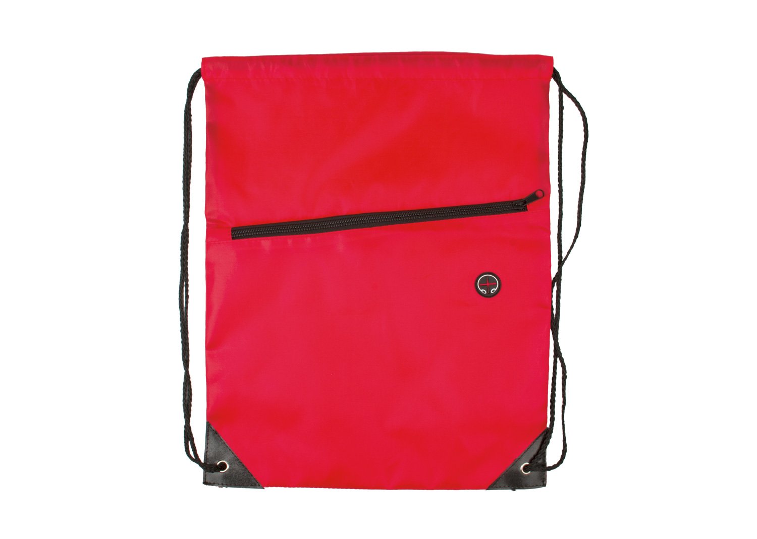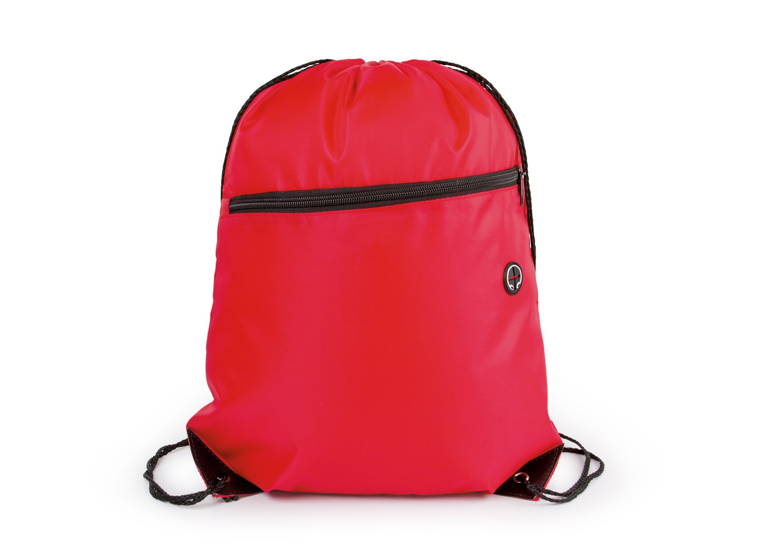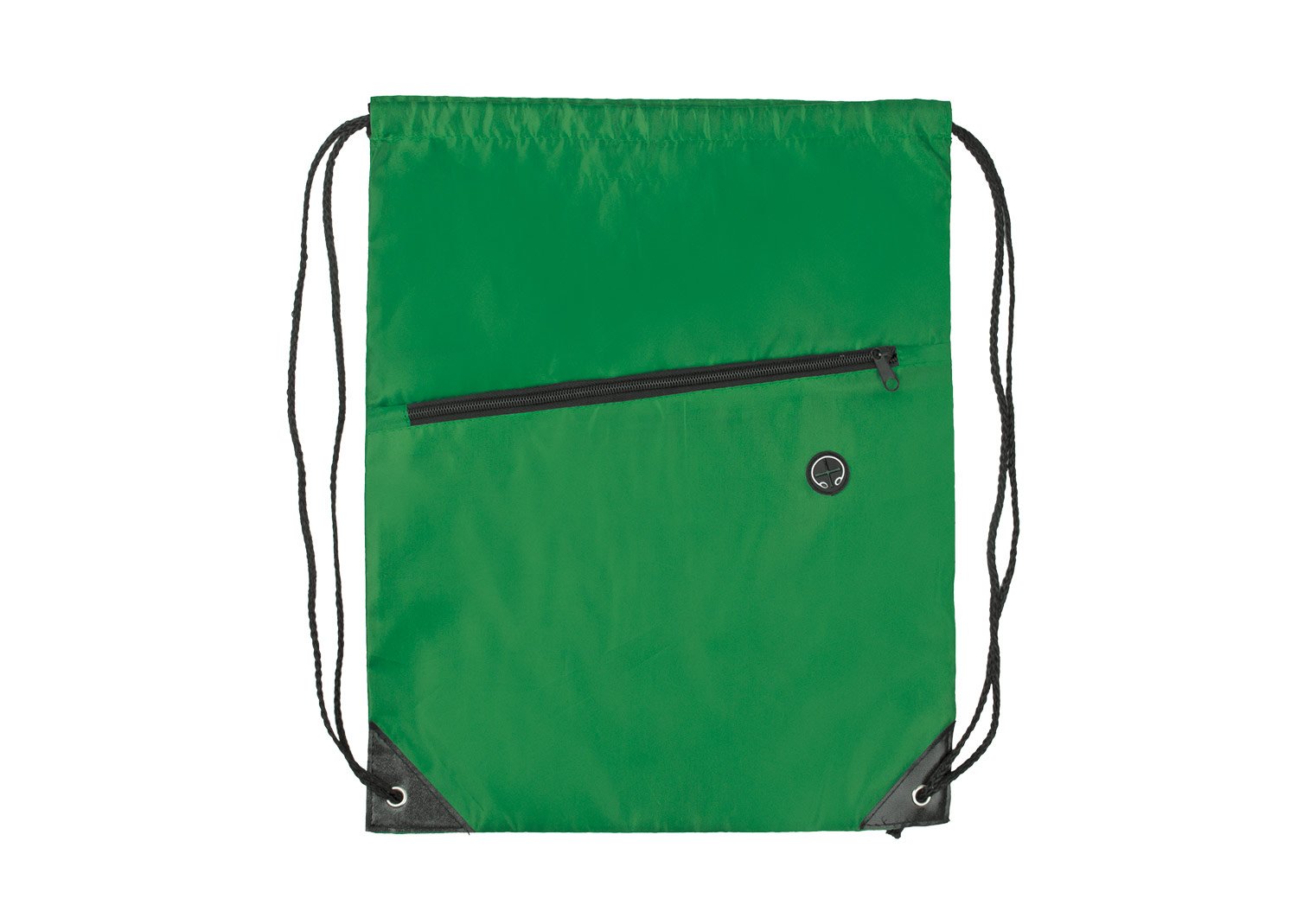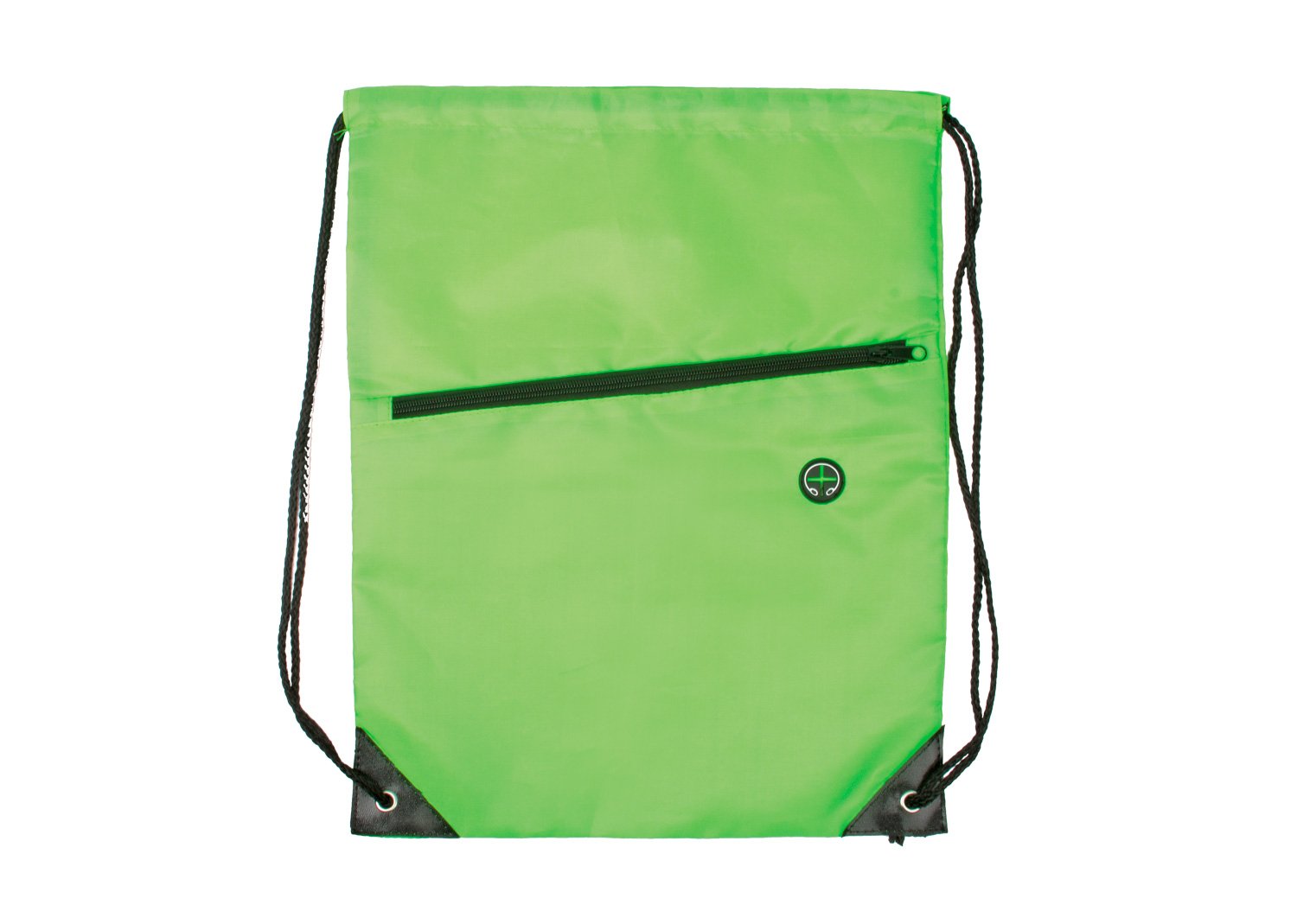 Bolsa con cordón para ajustar y cargar fácilmente. Bolsillo delantero con cremallera y orificio para audífonos. Con refuerzo en las esquinas.