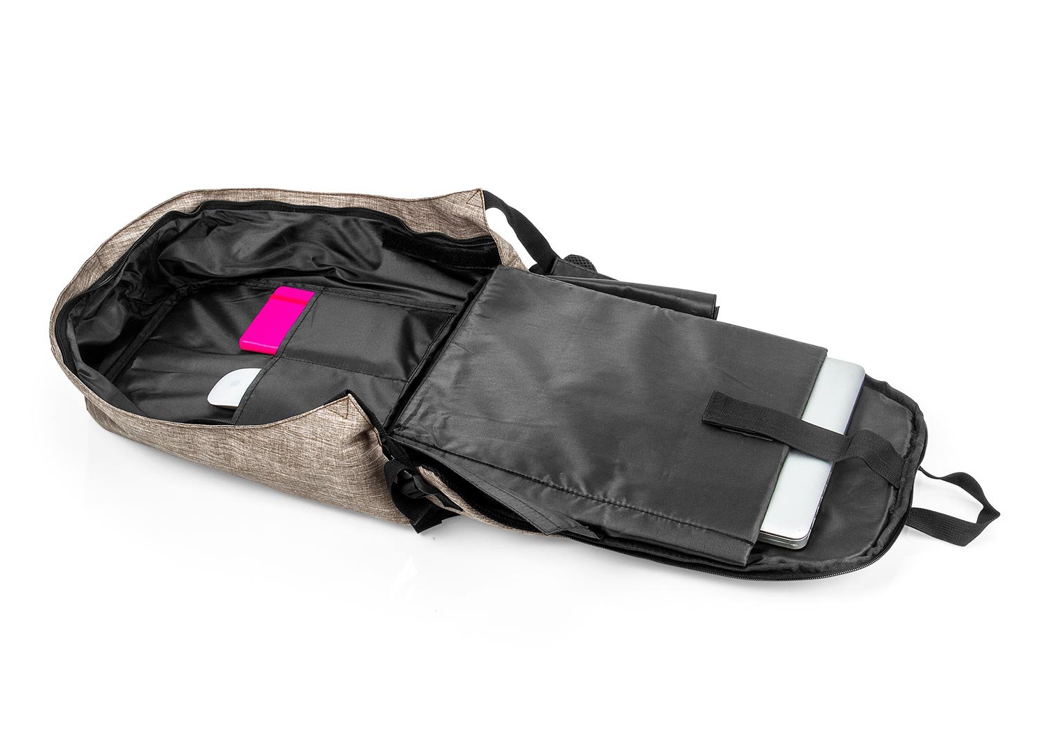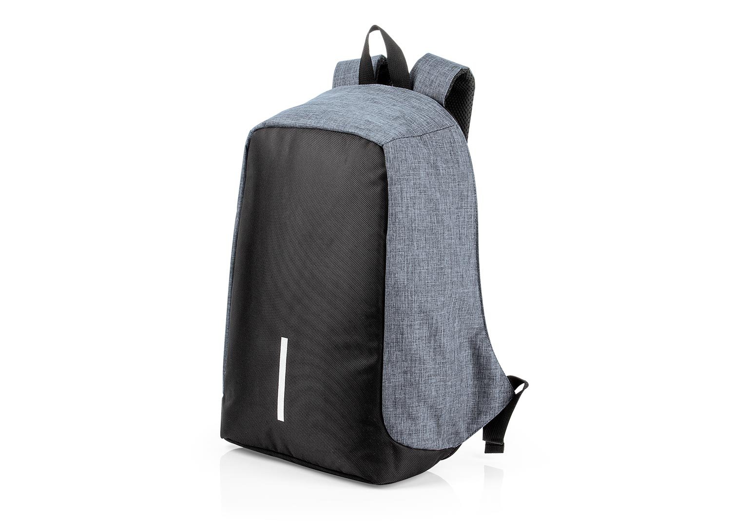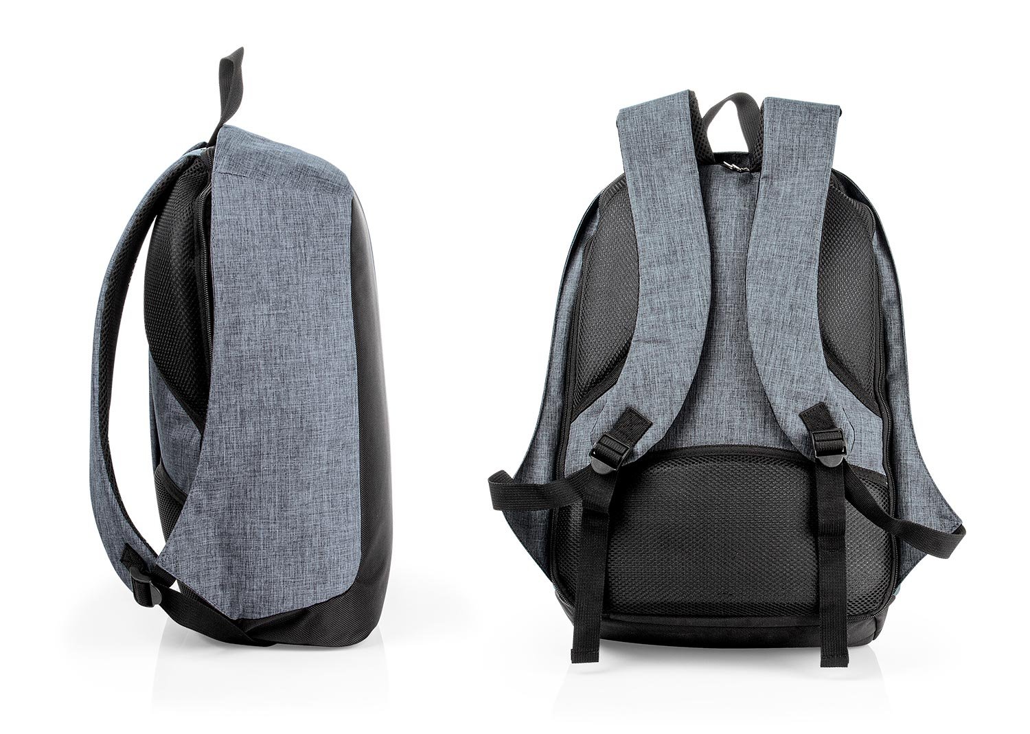 MorralesMorral antirrobo con cremallera del bolsillo principal oculta en la parte posterior, que al momento de llevar hace muy difícil de abrir, con una franja frontal que en la noches se refleja, cargaderas ajustables y acolchadas, espaldar acolchado, bolsillo principal cierre doble cremallera con compartimiento apropiado para portátil de hasta 19” con velcro interno a cada lado de la maleta para dar mayor amplitud al momento de abrir, espacio interior para libreta y/o celular. Volumen aproximado: 17 litros.