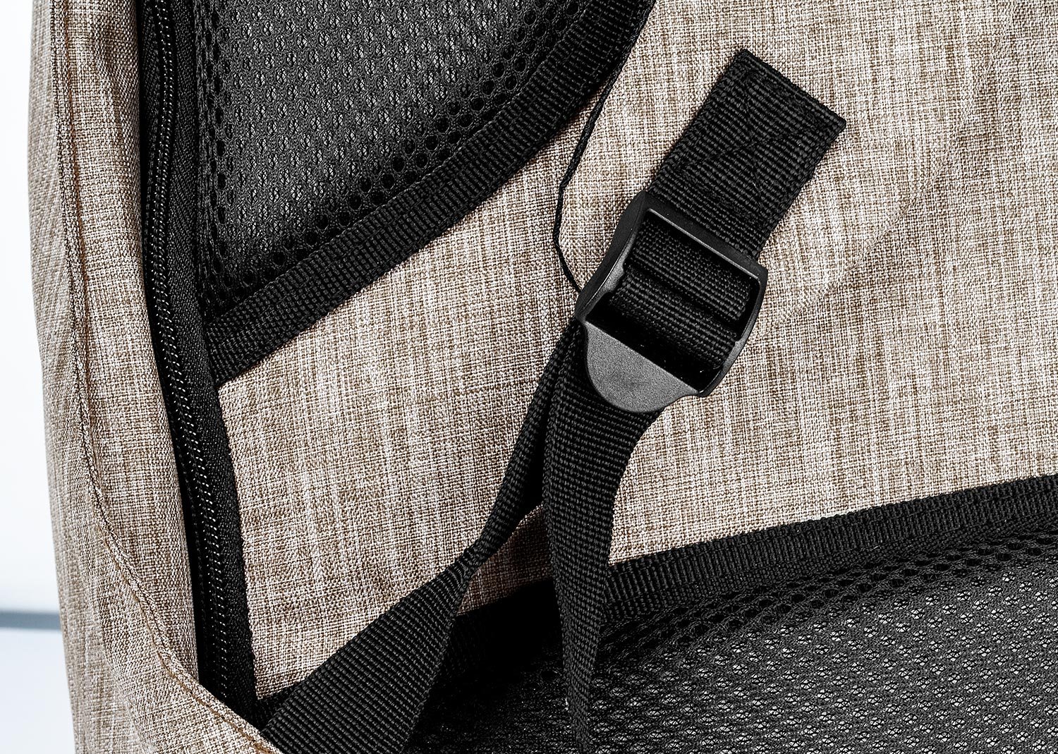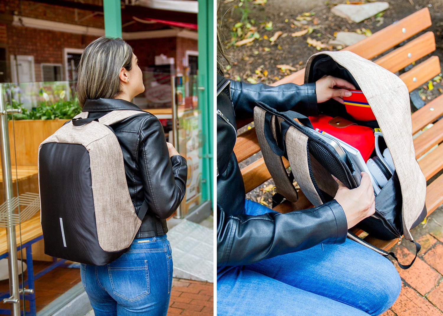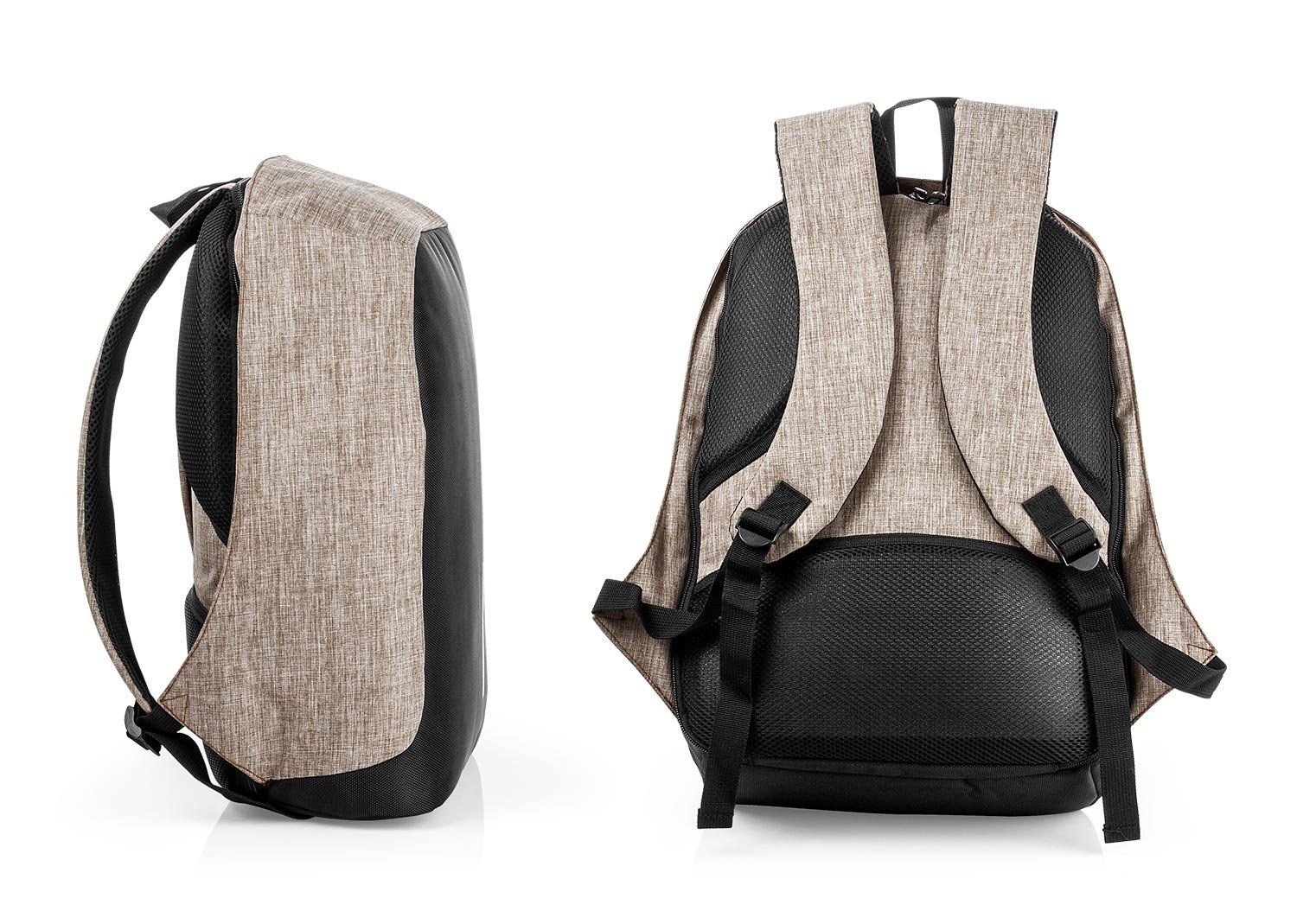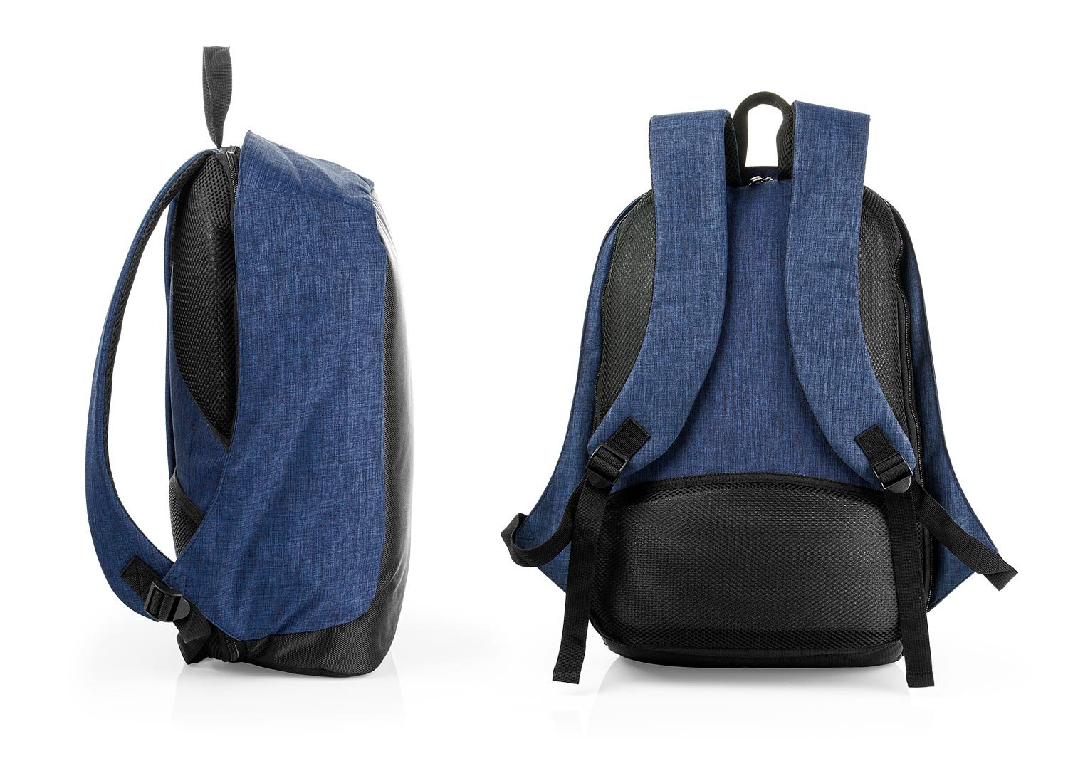 MorralesMorral antirrobo con cremallera del bolsillo principal oculta en la parte posterior, que al momento de llevar hace muy difícil de abrir, con una franja frontal que en la noches se refleja, cargaderas ajustables y acolchadas, espaldar acolchado, bolsillo principal cierre doble cremallera con compartimiento apropiado para portátil de hasta 19” con velcro interno a cada lado de la maleta para dar mayor amplitud al momento de abrir, espacio interior para libreta y/o celular. Volumen aproximado: 17 litros.