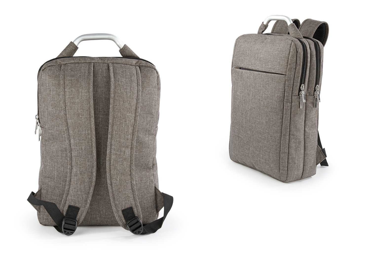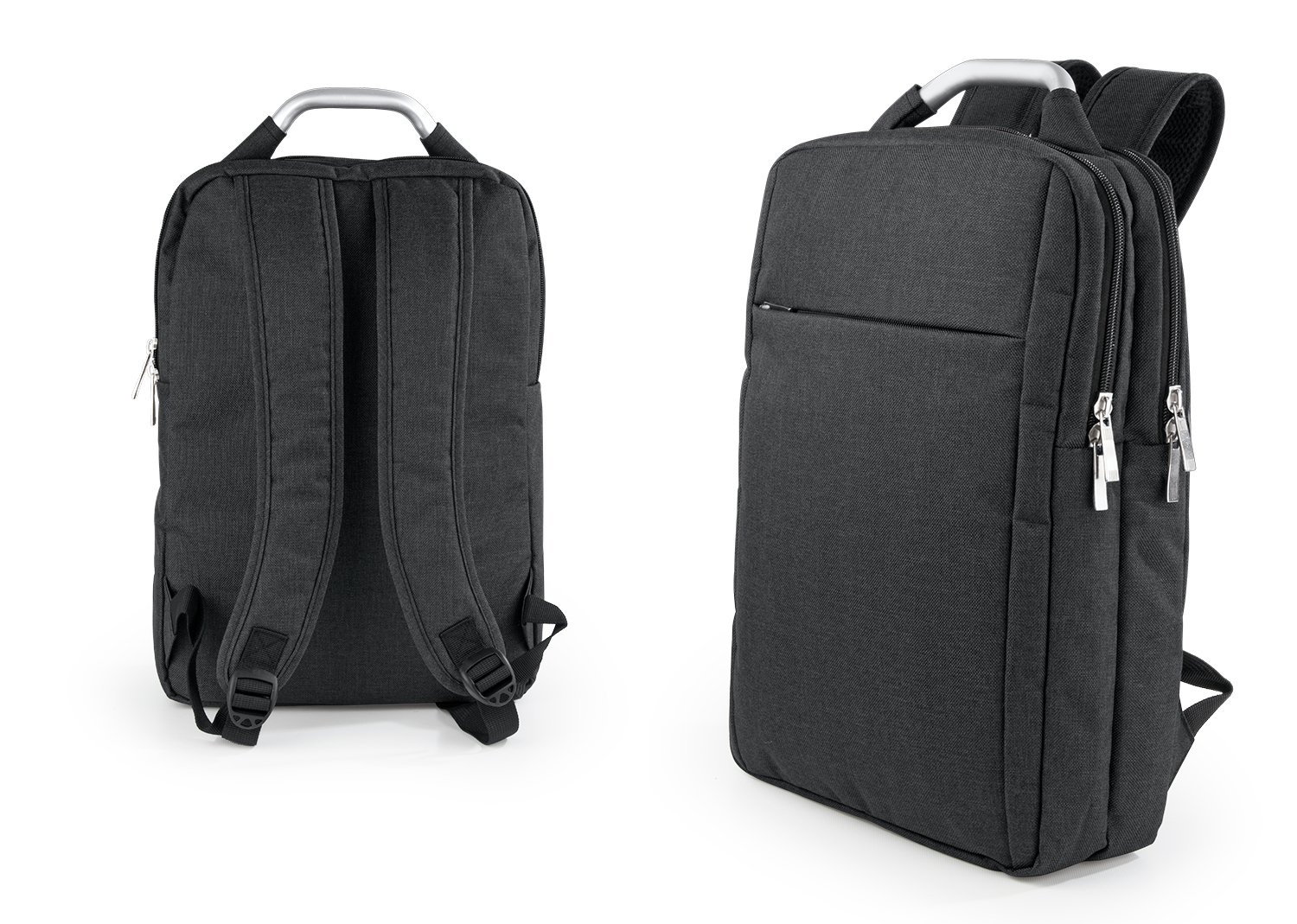 MorralesMorral con cargaderas ajustables acolchadas, agarradera en aluminio, bolsillo medio con compartimientos utilitarios en el interior, bolsillo principal con compartimiento para portátil de 14″. Incluye placa para marca láser. Volumen aproximado: 14 litros.