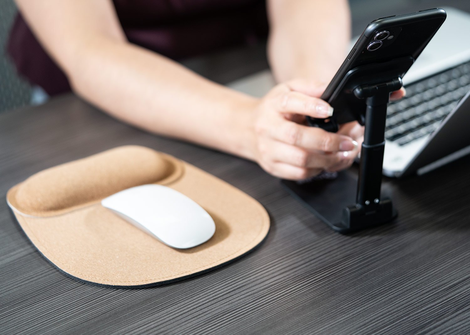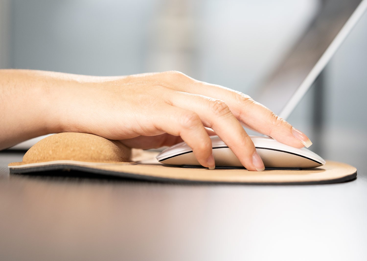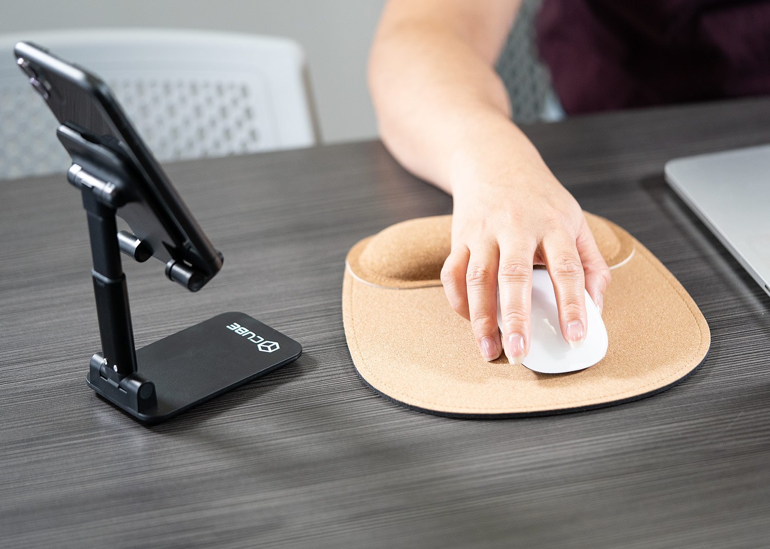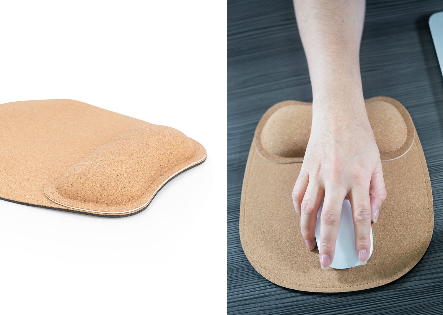 Mouse Pad de corcho con base antideslizante y apoyo acolchado para la muñeca, diseñado para prevenir el estrés y el dolor en las articulaciones.