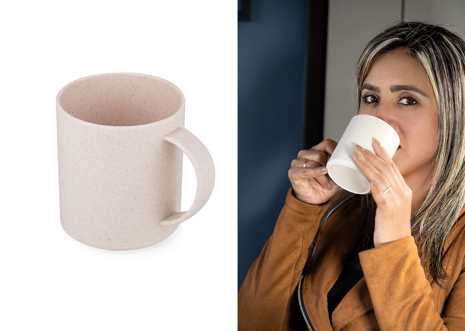 Vasos Plásticos y EcológicosMug ecológico con asa, hecho con paja de trigo. Capacidad 350 ml / 13 Oz.