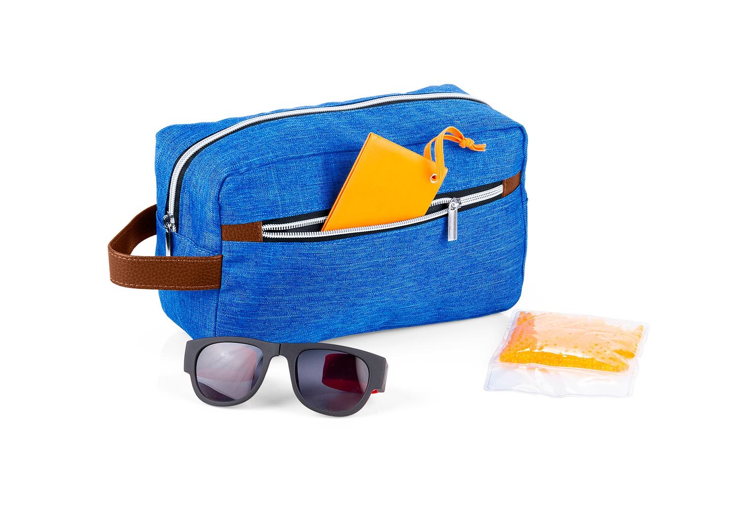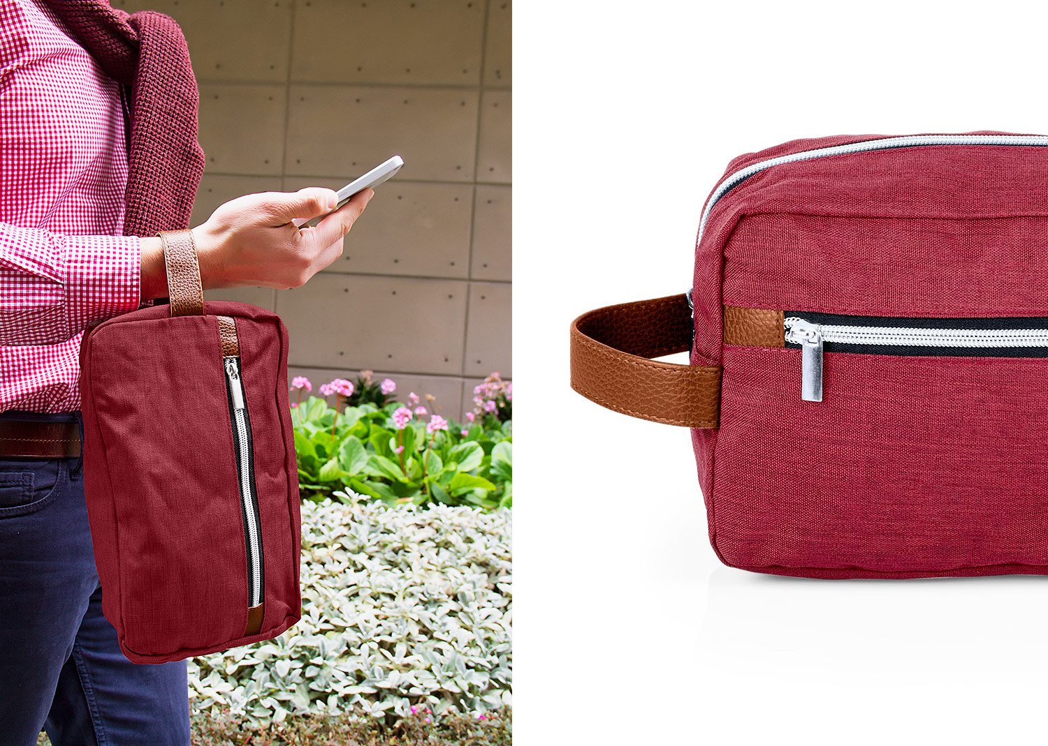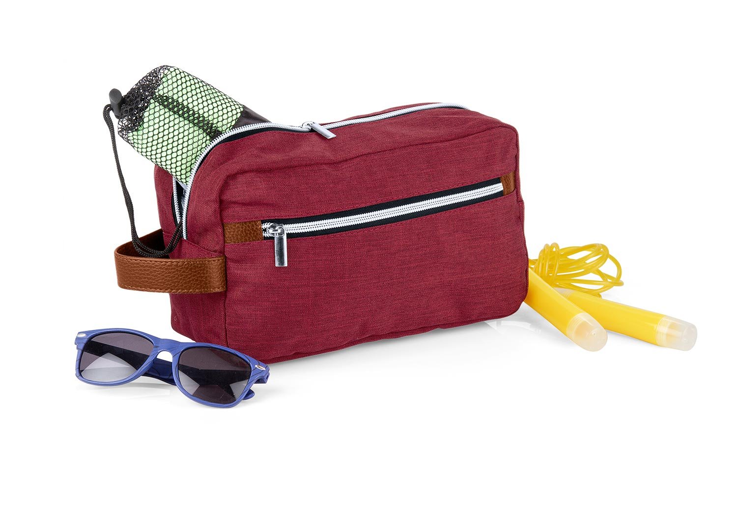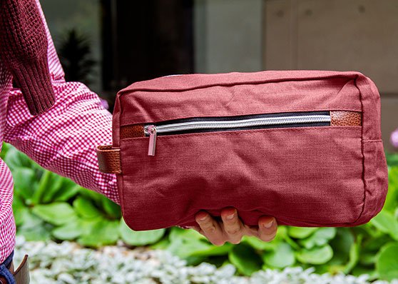 Cuidado PersonalEstuche con manija imitación cuero, bolsillos principal y auxiliar con cierre de cremallera. Ideal para los productos de aseo personal y/o cosméticos.