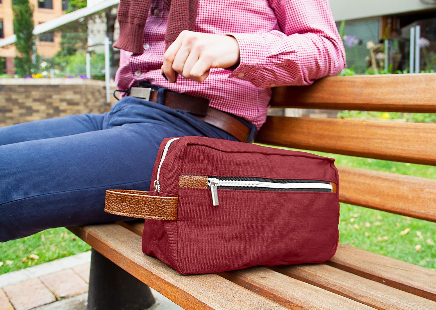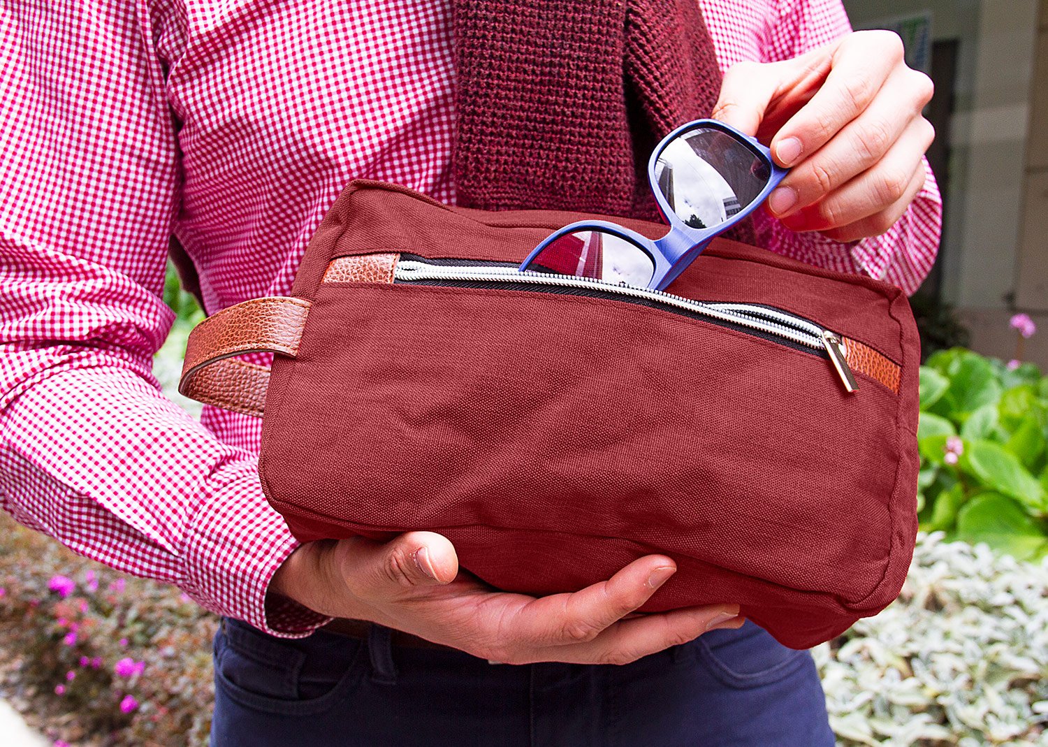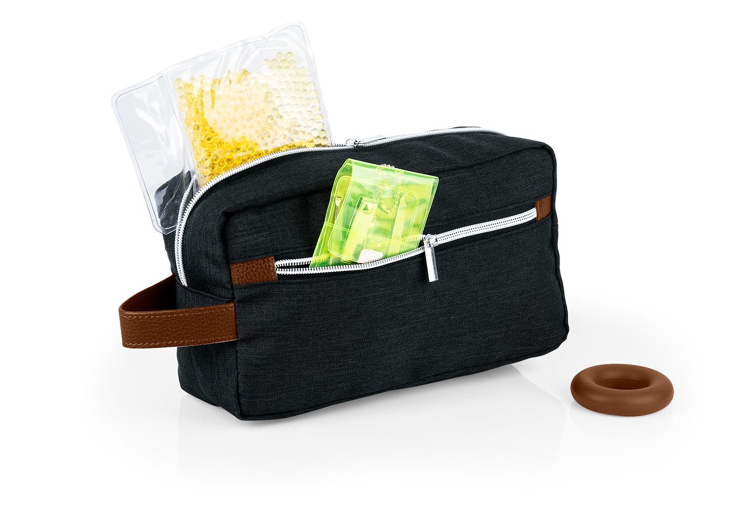 Cuidado PersonalEstuche con manija imitación cuero, bolsillos principal y auxiliar con cierre de cremallera. Ideal para los productos de aseo personal y/o cosméticos.