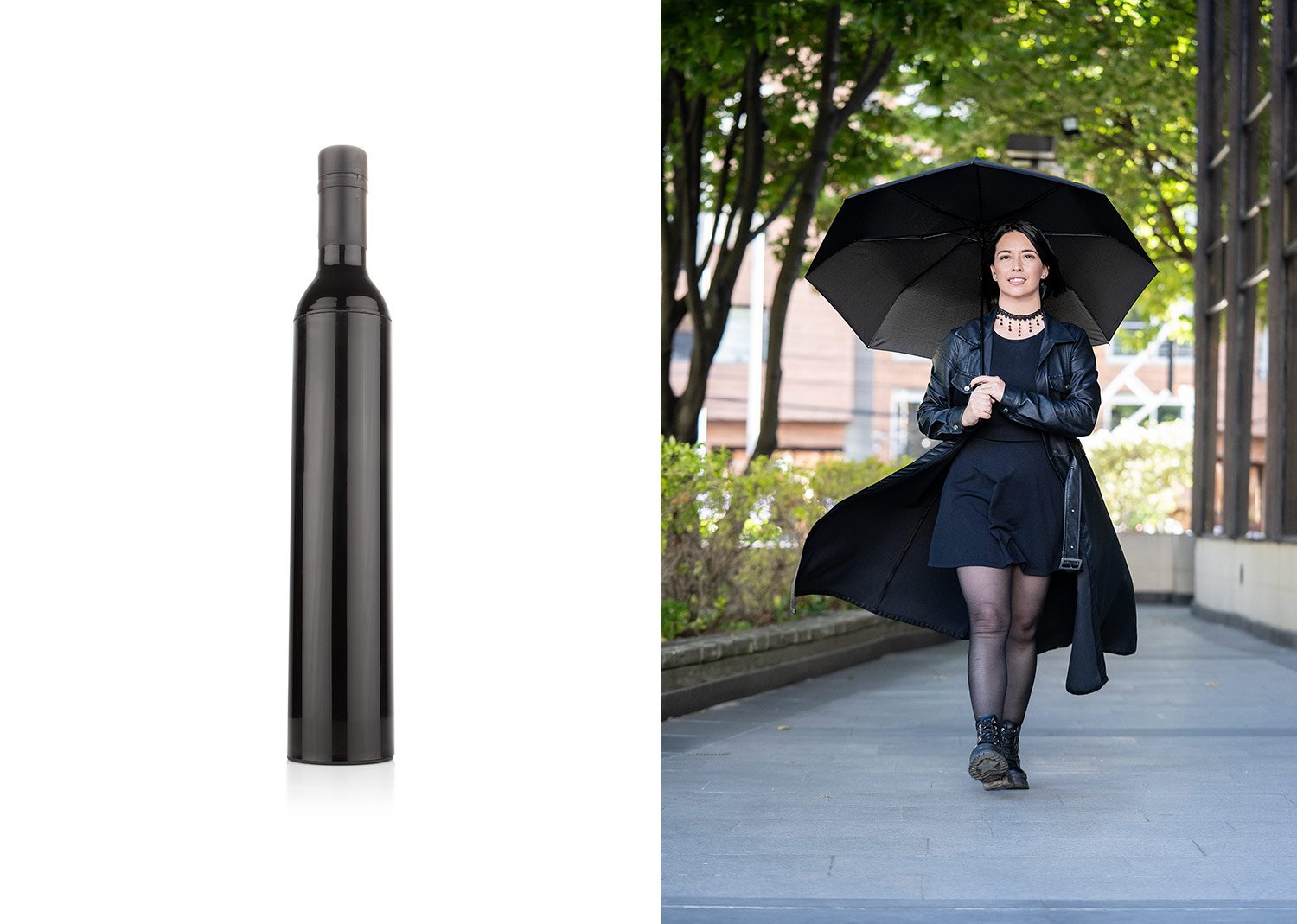 Paraguas de alta calidad confeccionado con tela Pongee 190T, con eje y varillas metálicas. Su estructura de aluminio ligero y duradero garantiza una protección confiable en días lluviosos. Incluye estuche con forma de botella. (Paraguas/Sombrilla)