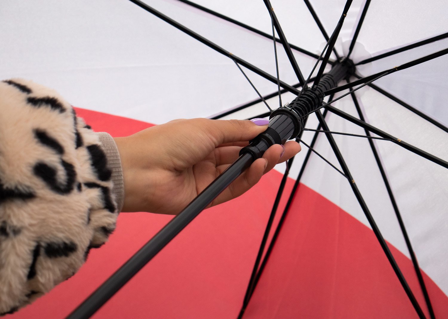 Paraguas FashionParaguas de 23 sistema de apertura automática y cierre manual, 8 cascos, eje y varillas metálicas con recubrimiento negro, 190t tela pongee. Mango curvo plástico en PP curvo a juego con el color de la tela. (Paraguas/Sombrilla)