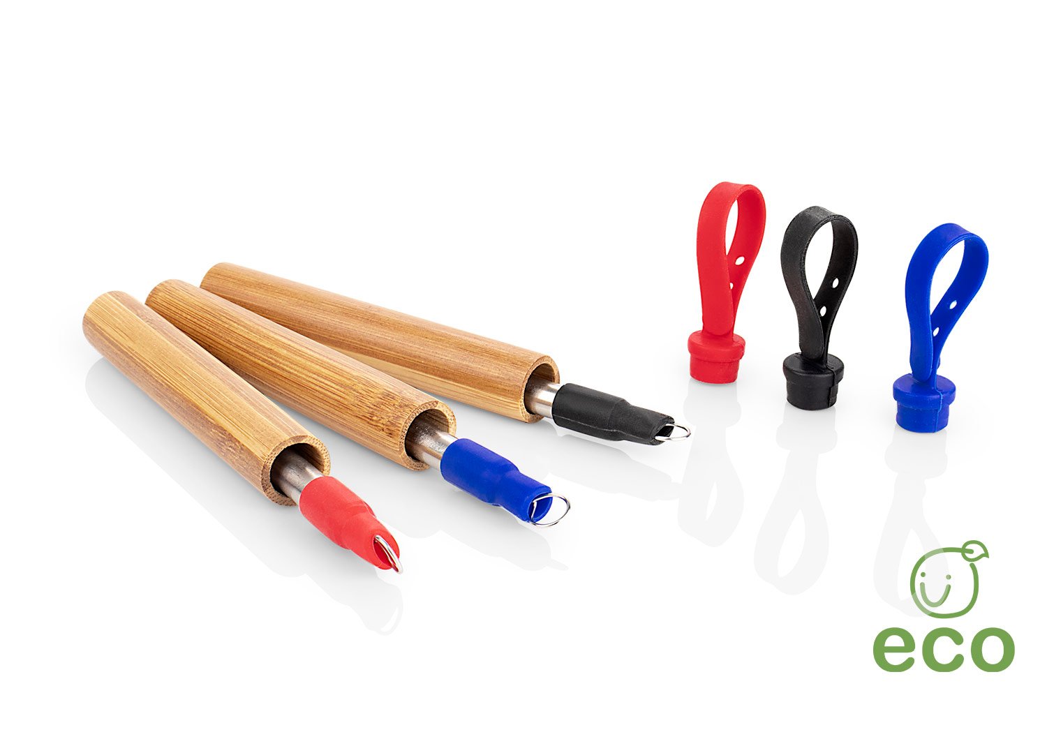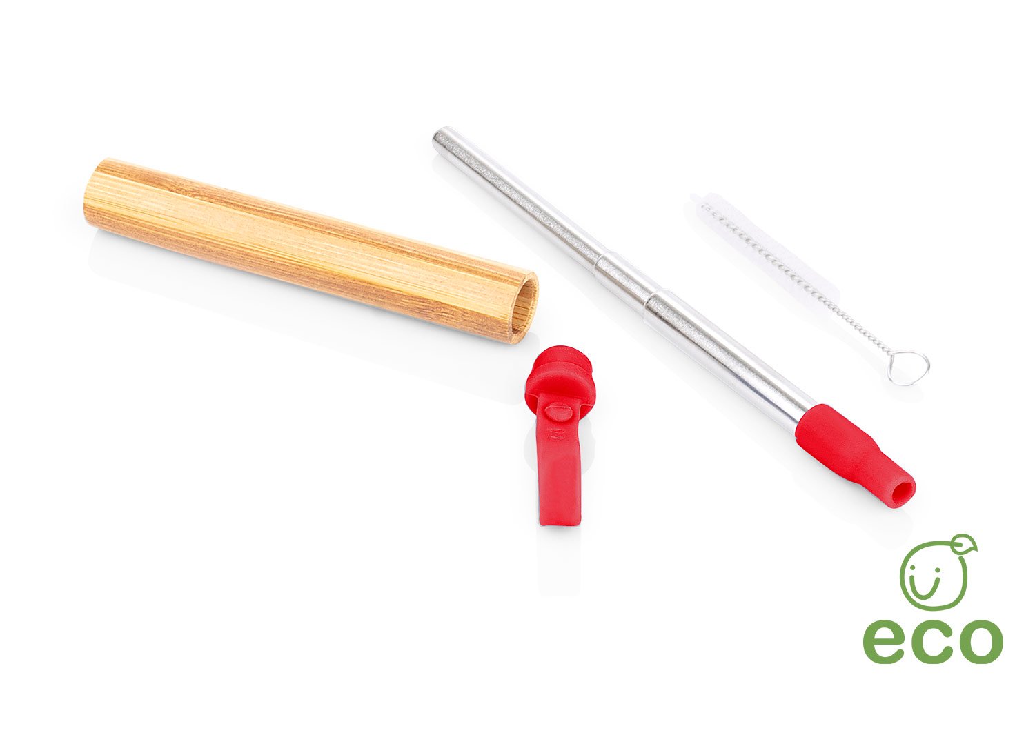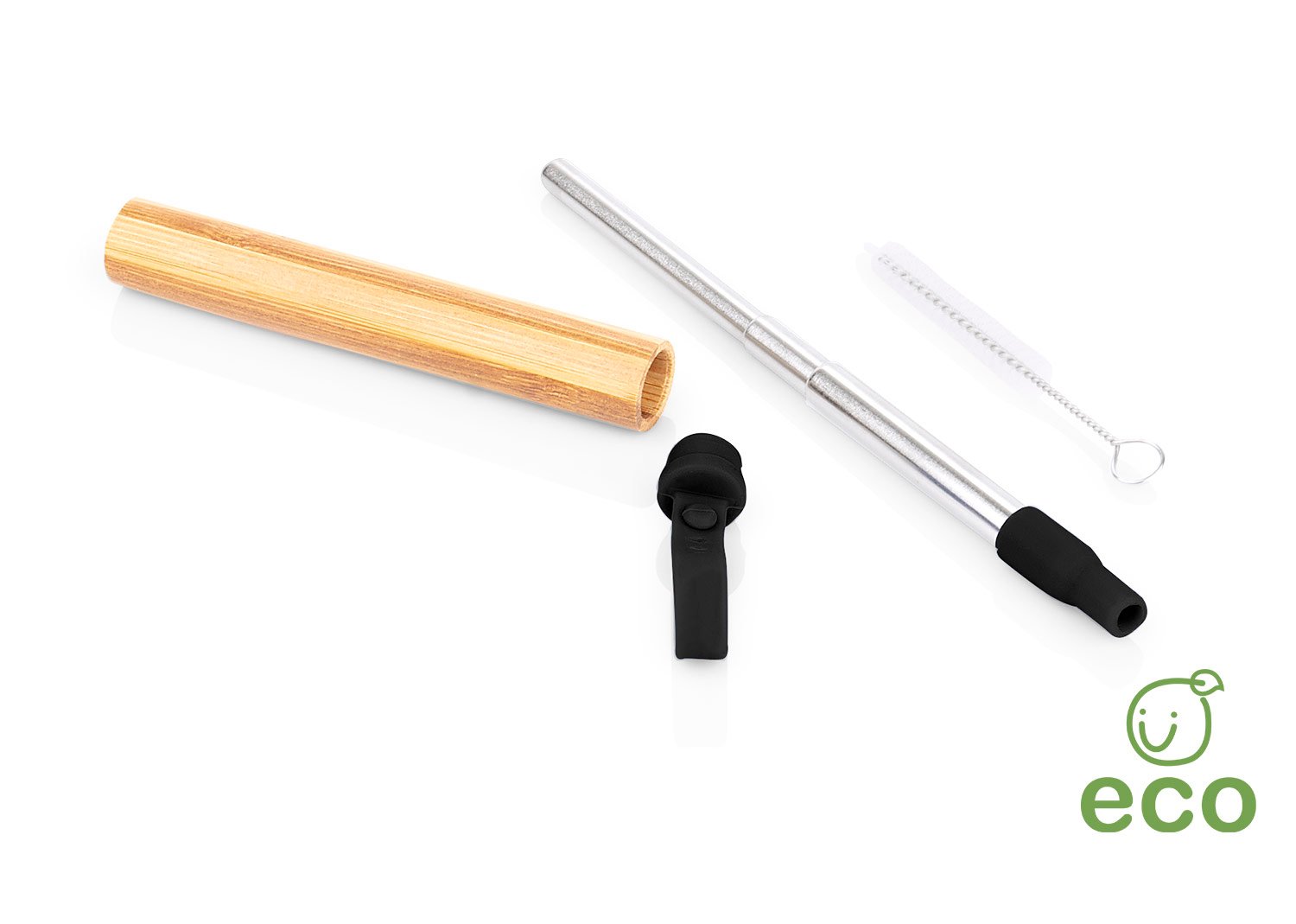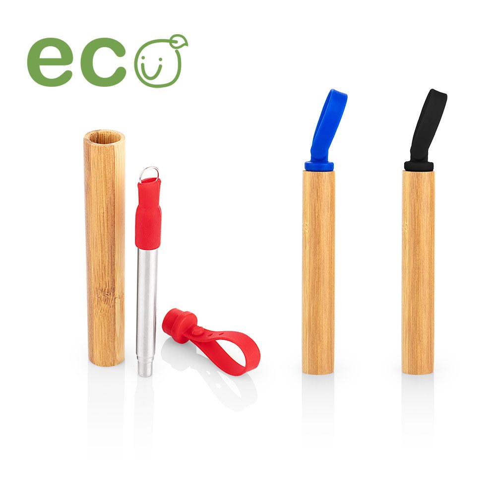 Pitillos ecológicos en acero inoxidable y boquilla en silicona con estuche en Bambú, Practica tapa con correa para transportr facilmente y cepillo para su limpieza. Producto de uso personal. No se aceptan devoluciones.