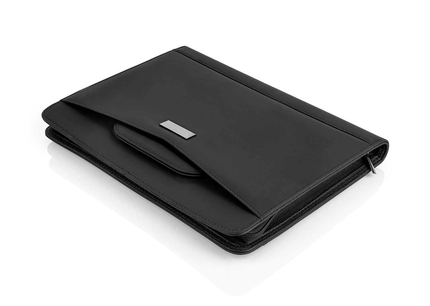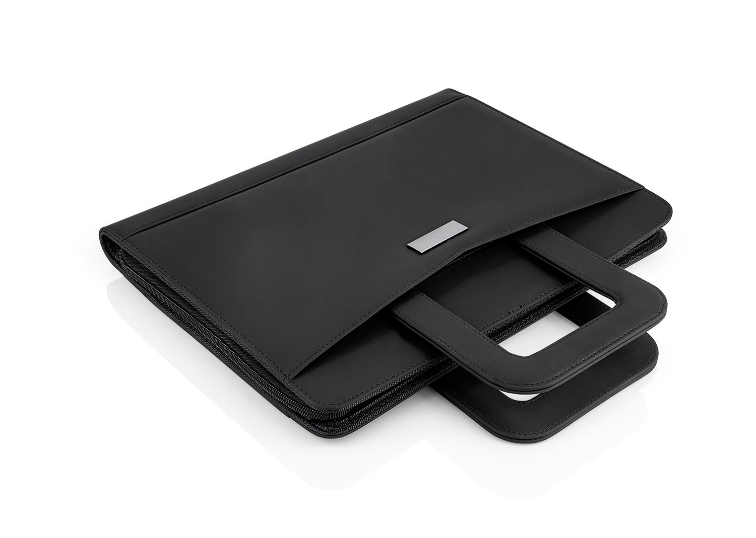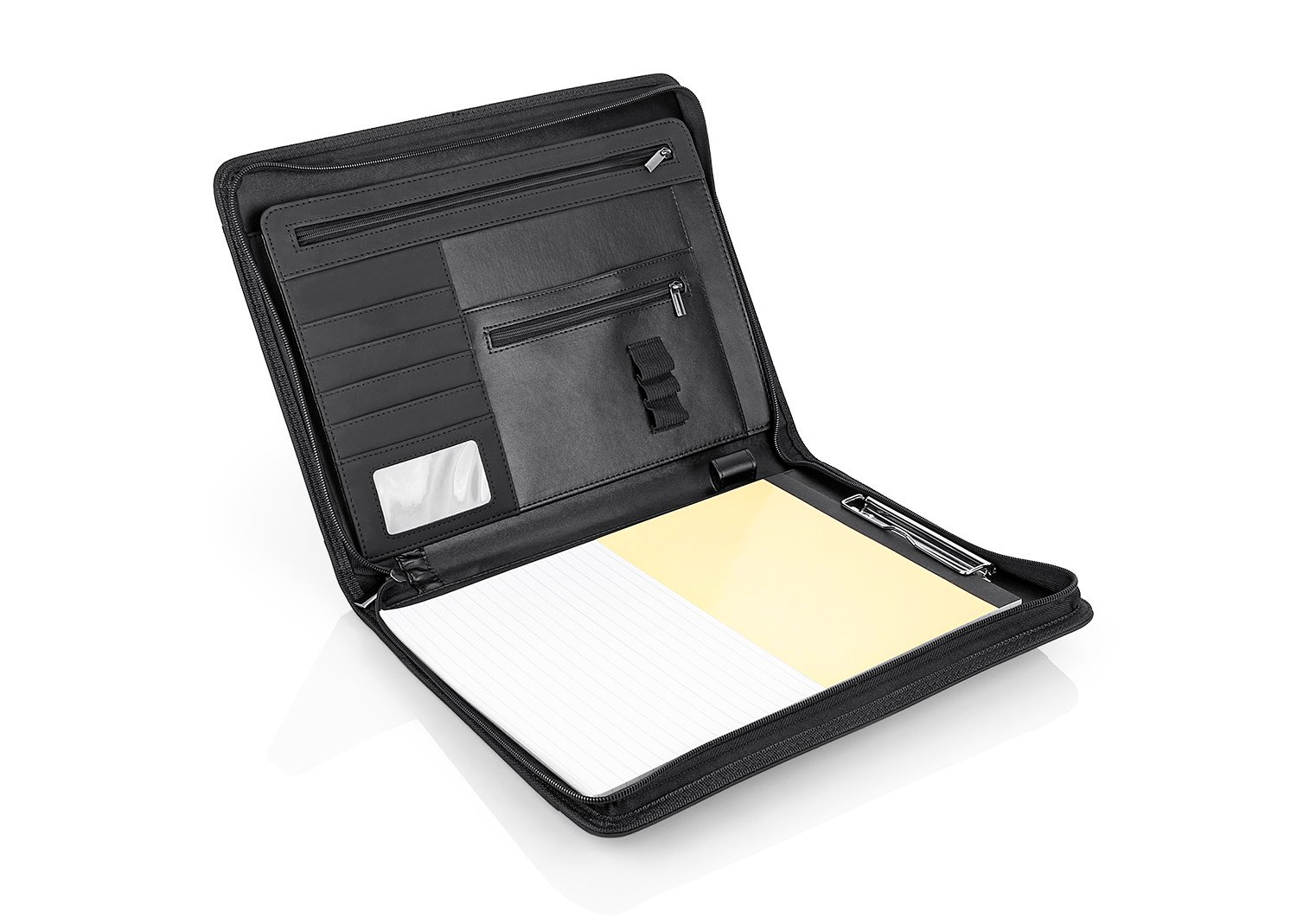 Accesorios de EscritorioPortafolio en PU, con bloc de notas papel blanco con 30 hojas rayadas, gancho legajador metálico, dos agarrraderas que se ocultan y permiten transportar facilmente, multiples bolsillos para organizar tarjetas de presentación, bolígrafos, calculadoras, bolsillo prinicipal para guardar portatil o tablets de 12″