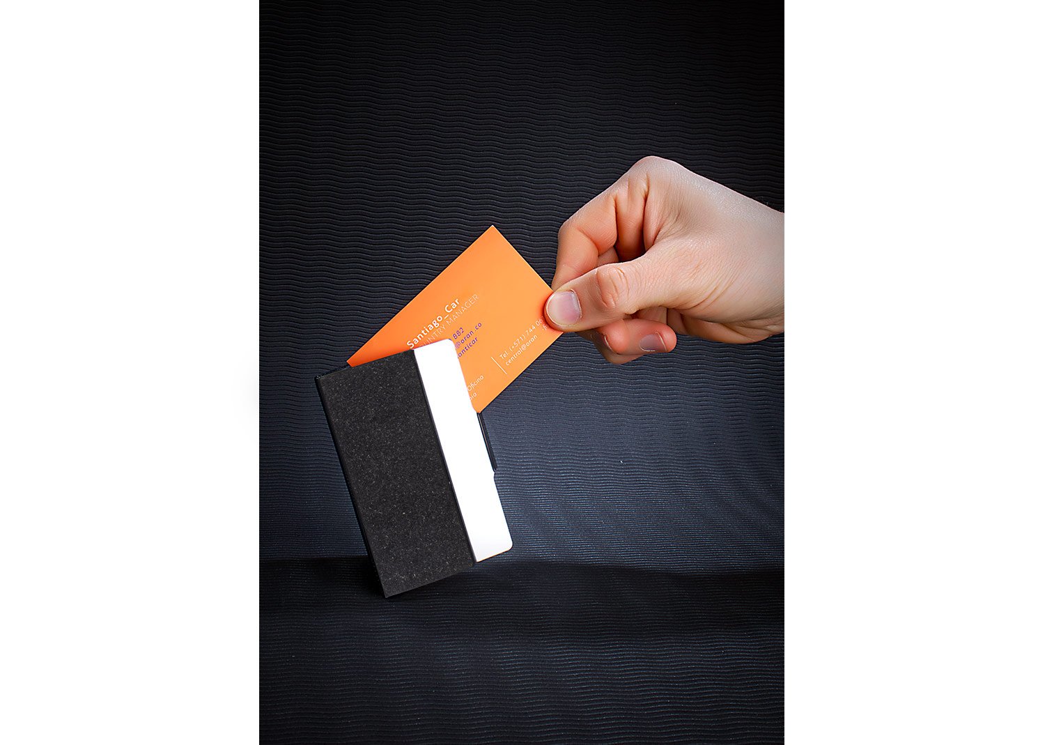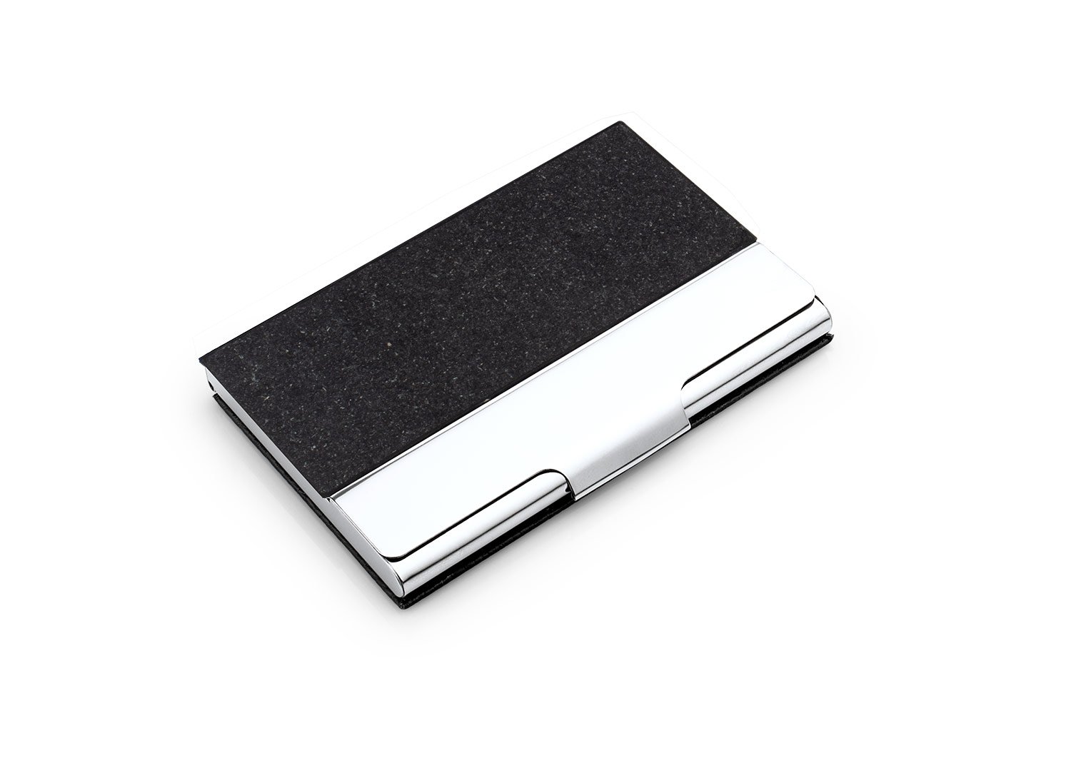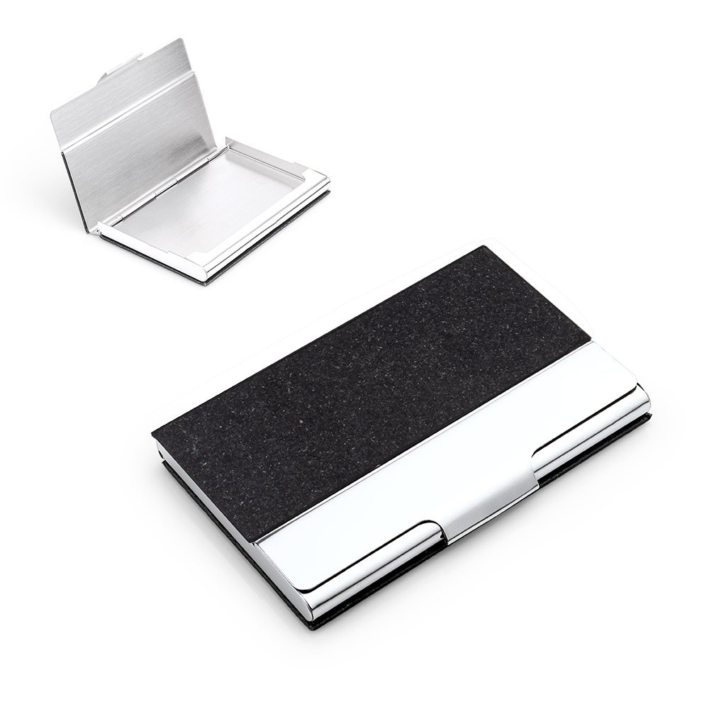 Accesorios de EscritorioPortatarjeta Metálico con cubierta en cuero reciclado, cierre a presión.