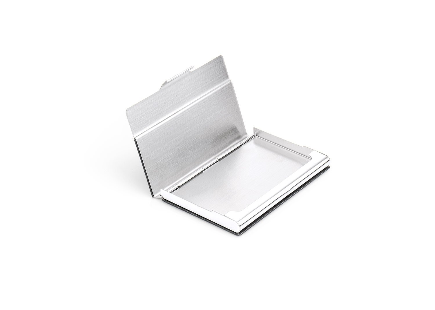 Portatarjeta Metálico con cubierta en cuero reciclado, cierre a presión.