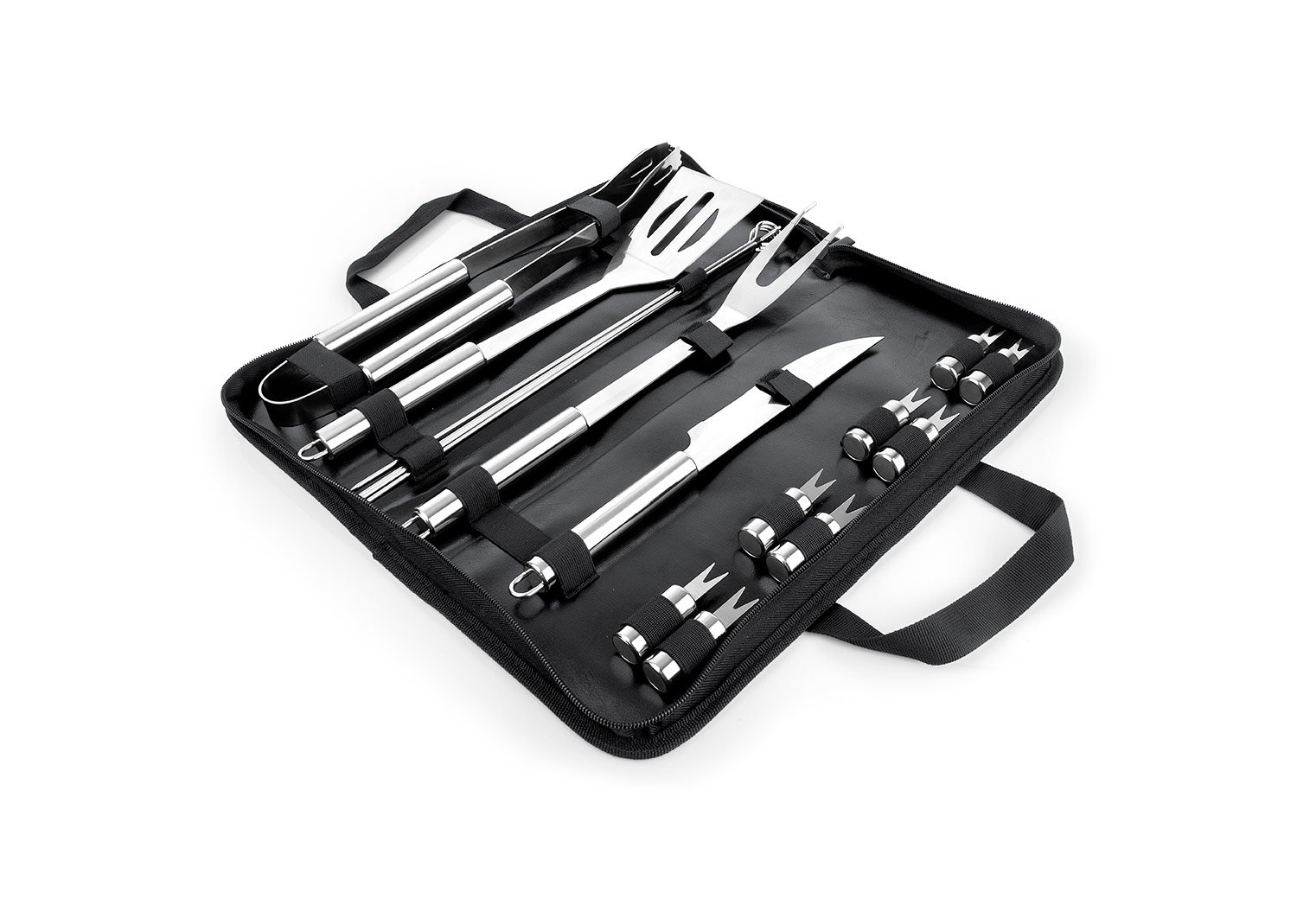Accesorios de CocinaSet BBQ x 16 pcs Incluye: Pala barbacoa, Cuchillo, Tenedor de parrilla, set x 4 brochetas, set x 8 tenedores para maíz y Pinzas de parrilla, con estuche textil, cierre en cremallera y manijas.