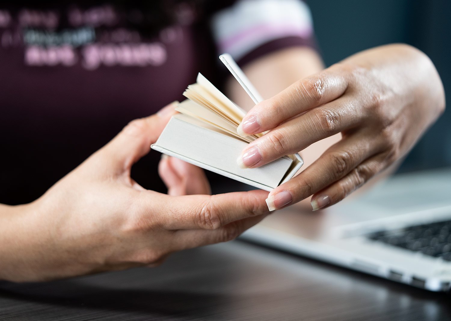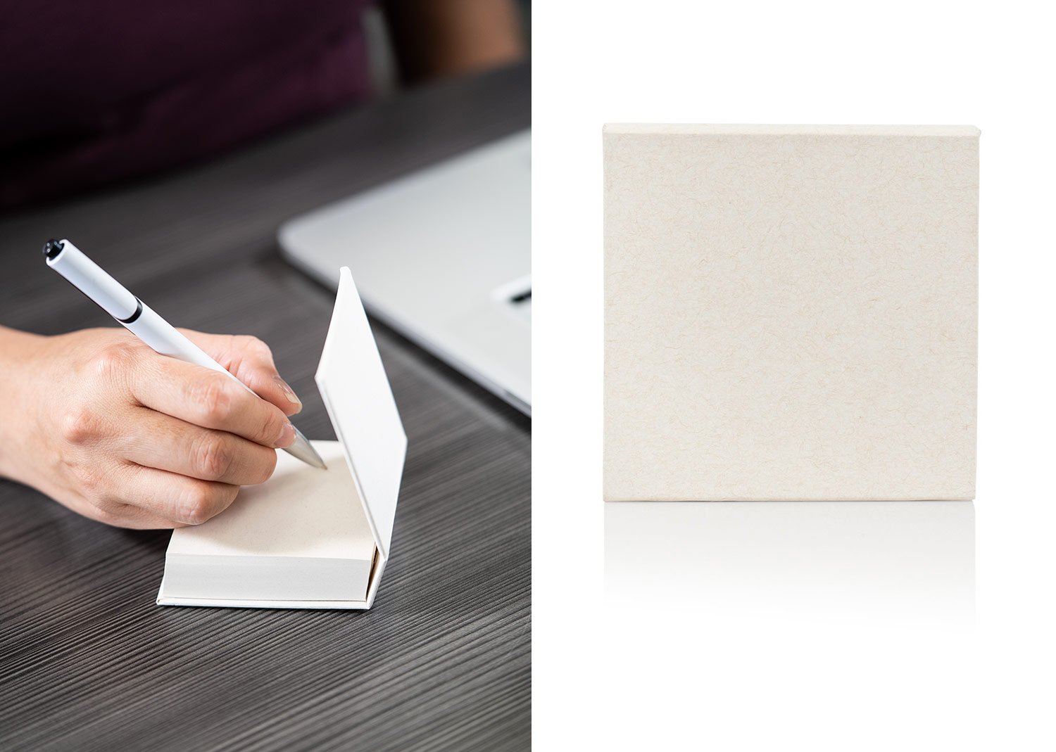 Set de memos con 200 hojas de 70 gramos. La cubierta es dura y las hojas están elaboradas en material recuperado de cajas Tetra Pak.