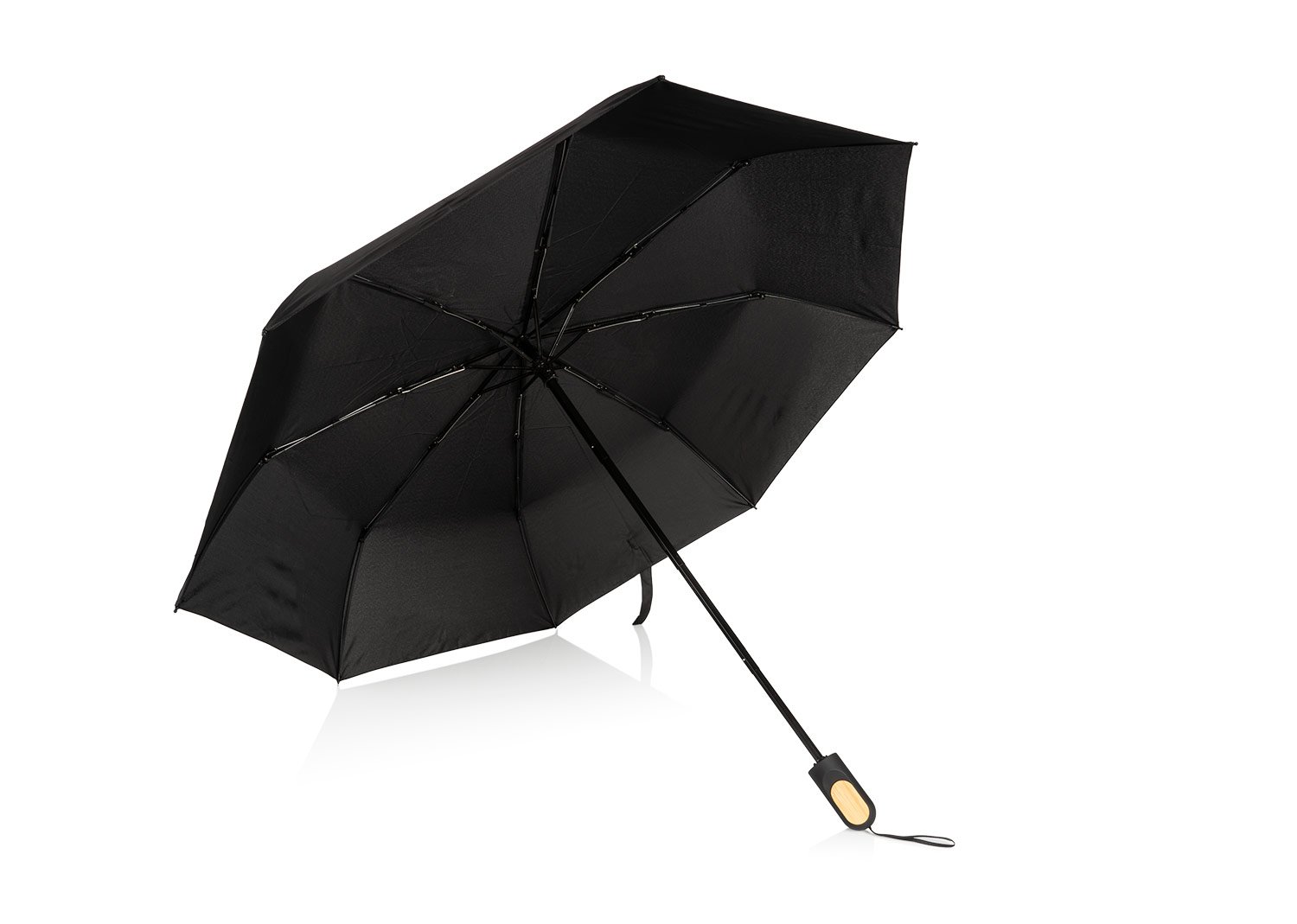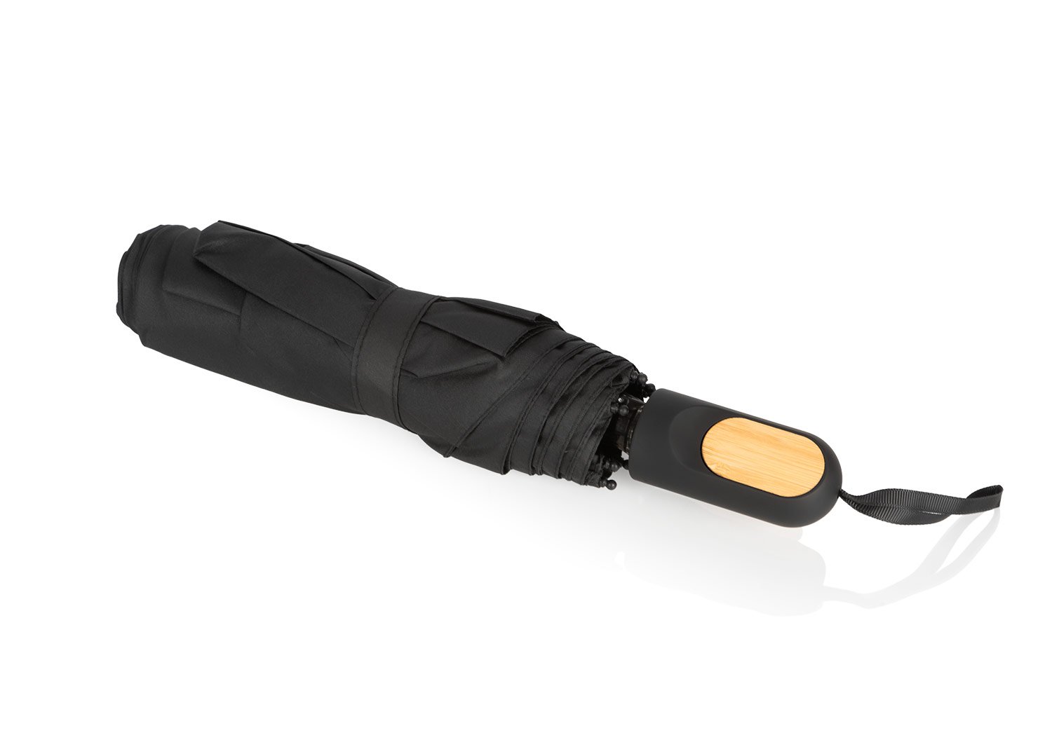 Paraguas MiniSet ejecutivo con estuche de lujo. Incluye botella de 600 ml (20 Oz) en acero inoxidable con tapa de rosca y banda de silicona para transportar con facilidad, además de un Paraguas mini de 19″. Ambos elementos tienen un detalle en bambú para marcar con láser. (Paraguas/Sombrilla)