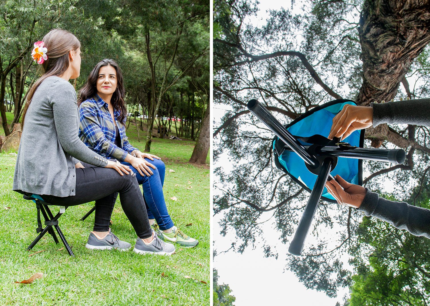 Silla plegable de 3 patas, incluye bolsa de transporte con reata para cargar y cordón de ajustar. Capacidad: Soporta hasta 80 Kg de peso.