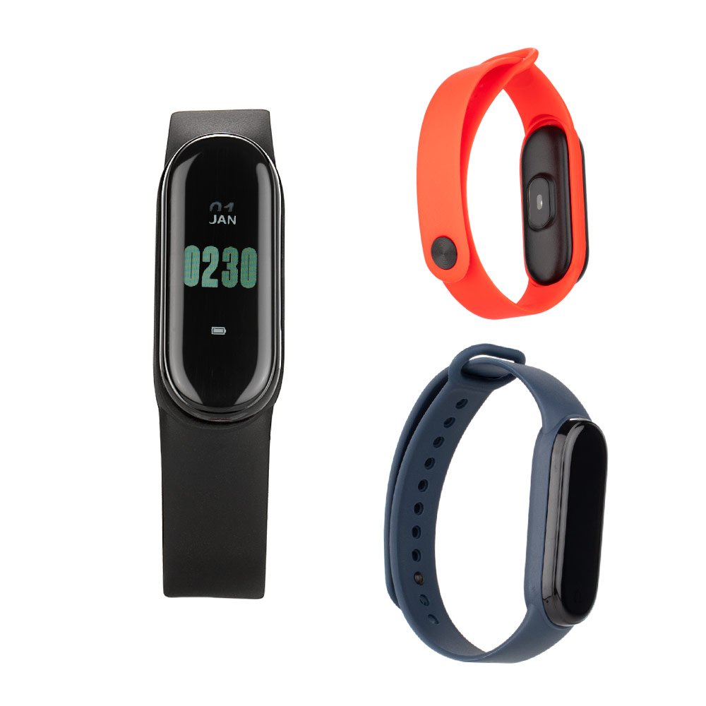 Reloj inteligente con pantalla táctil de 0,96″. Análisis y monitoreo del número de pasos, calorías, distancia, monitor de fatiga, monitor de sueño, nivel de oxígeno, frecuencia cardíaca, presión arterial y recordatorio de sedentarismo. Resistente al agua (nivel IP65). Incluye cronómetro, temporizador y reloj.