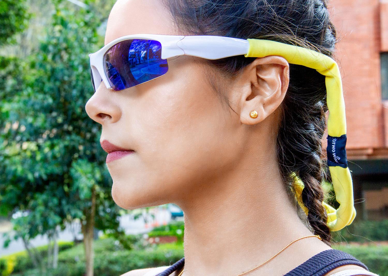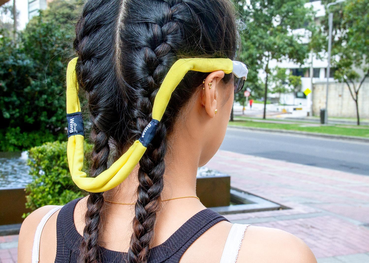 GafasSujetador para gafas con ajuste anti deslizante. La parte trasera se extiende y se convierte en una práctica funda.