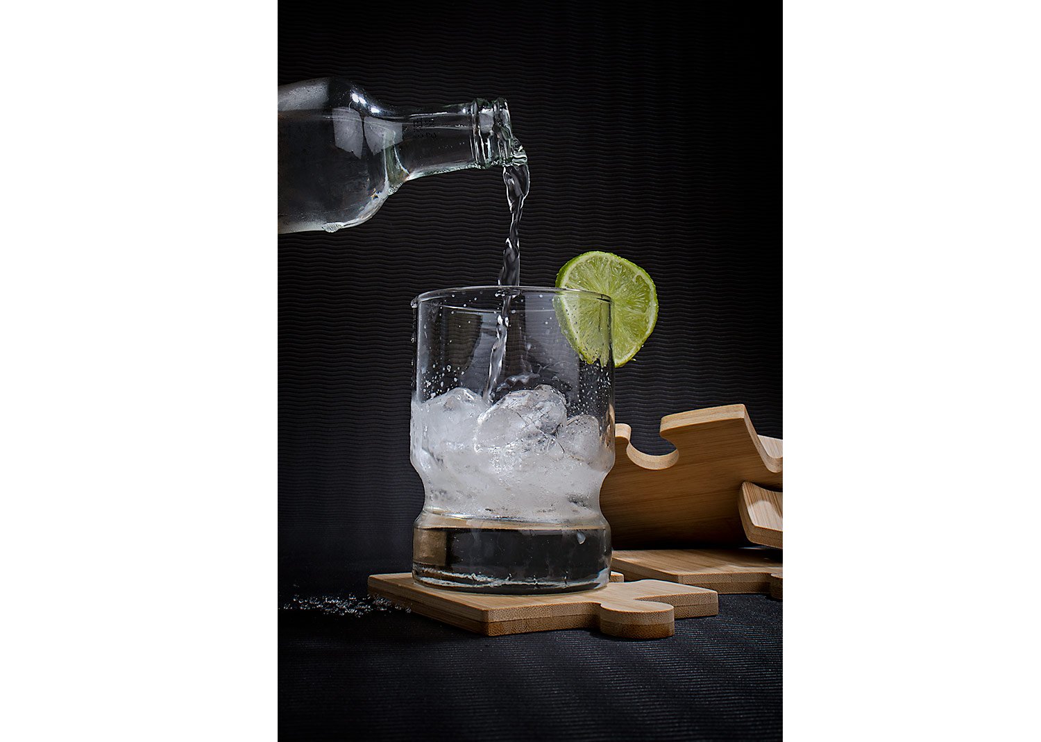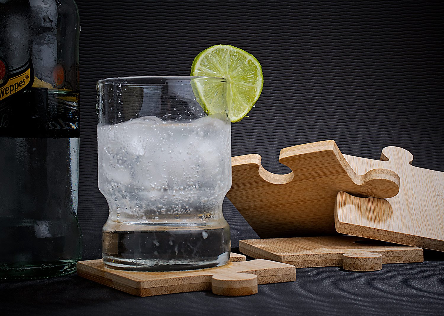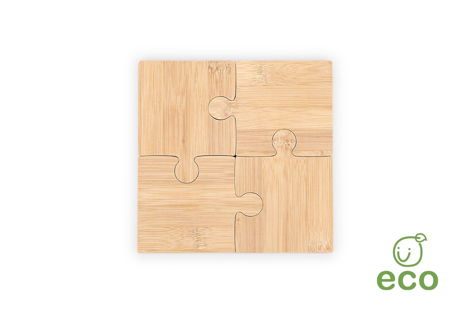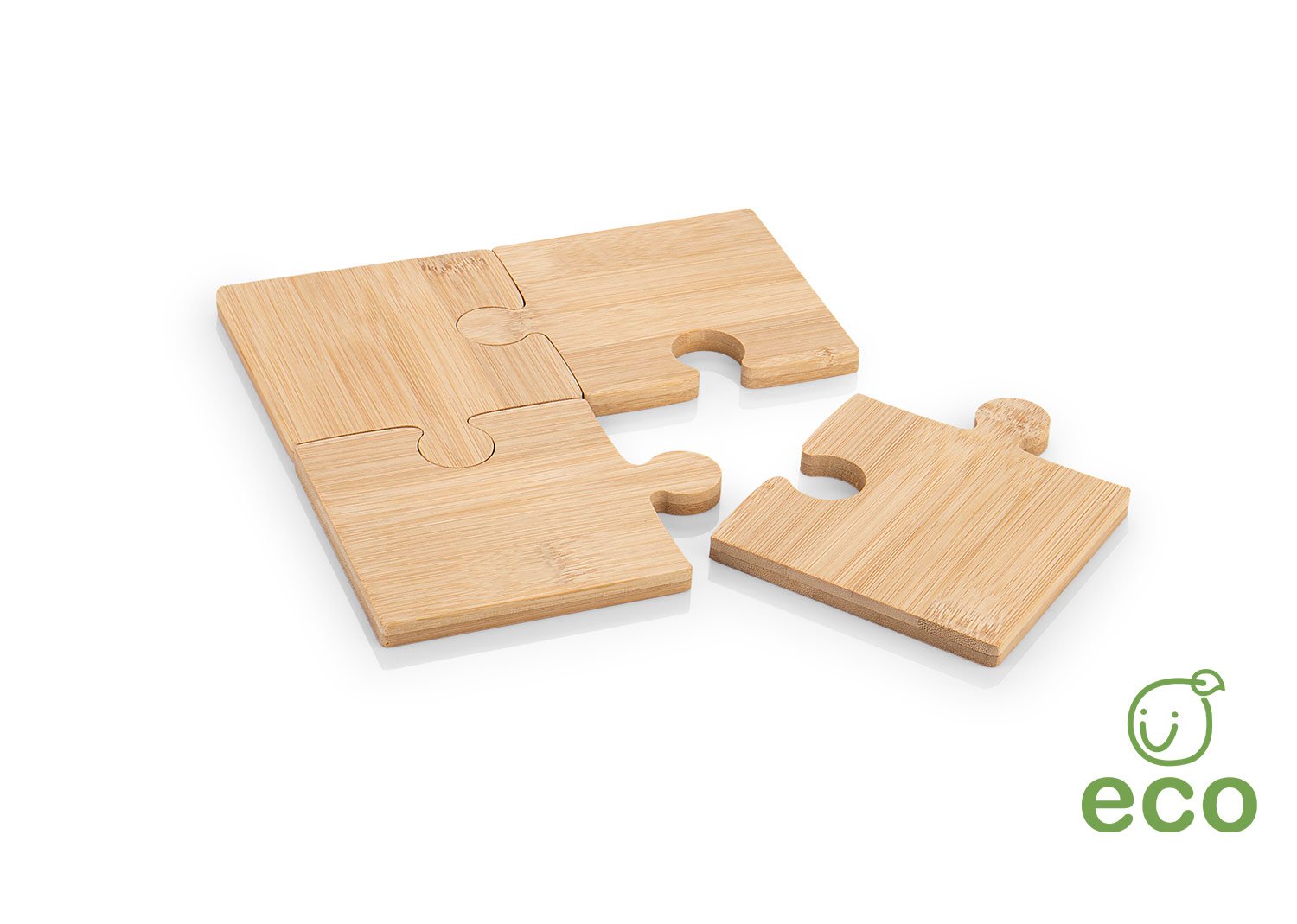 Prácticos portavasos en Bambú y forma de puzle, que al unir se puede usar como tabla de Picar.