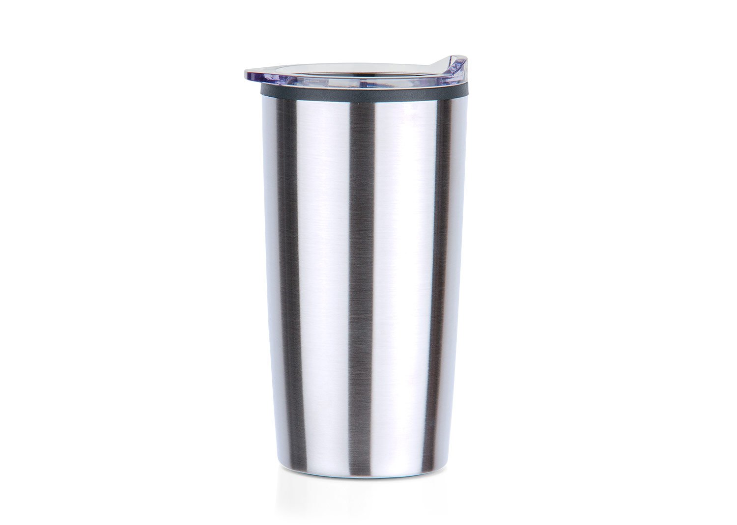 Mugs y Vasos MetálicosVaso con estructura de doble pared que ayuda a conservar la temperatura de las bebidas. Cuenta con recubrimiento interior en polipropileno (PP) y tapa plástica con cierre corredizo, que facilita su uso y reduce el riesgo de derrames. Temperatura recomendada de uso: ≤60 °C. Ideal para bebidas calientes o frías en entornos de oficina o exteriores. Capacidad: 550 ml / 18 Oz.