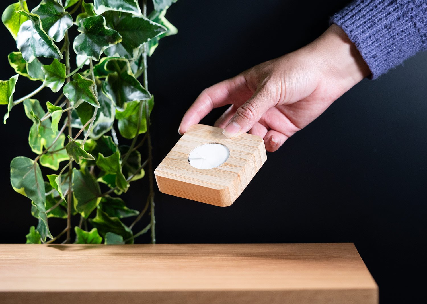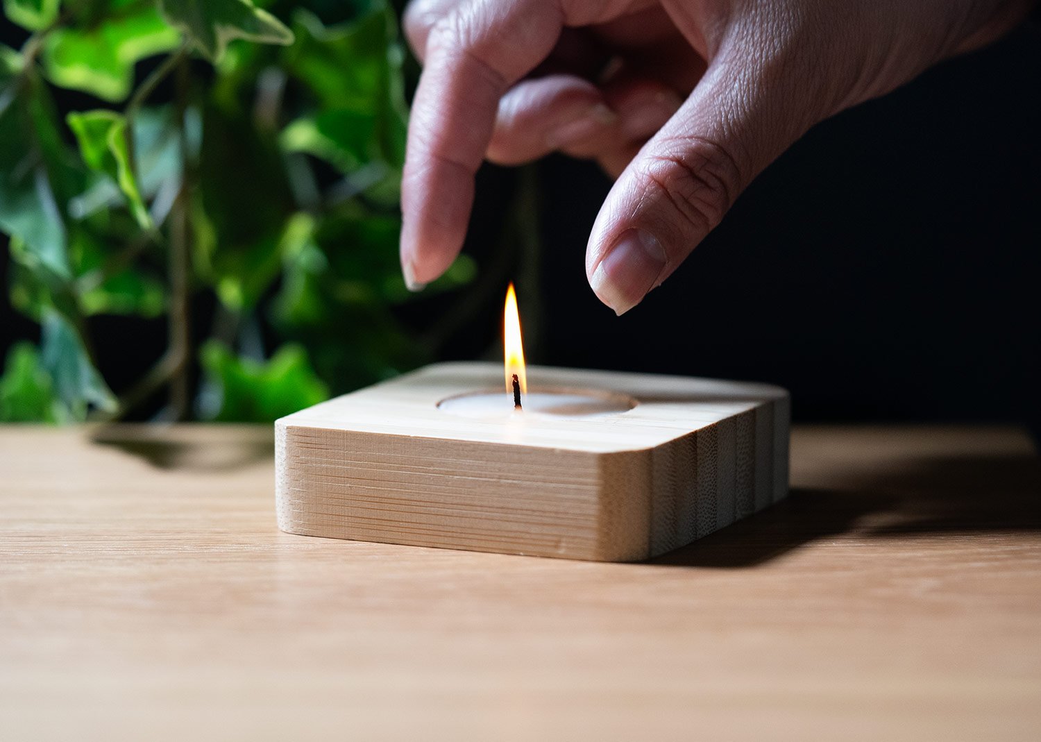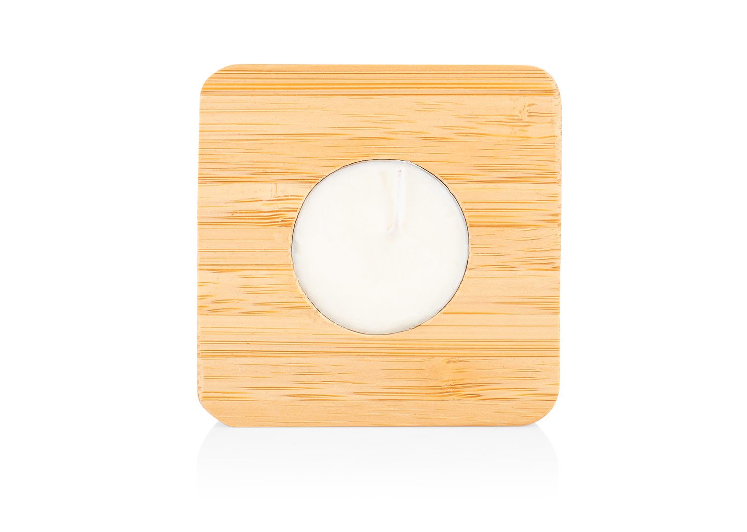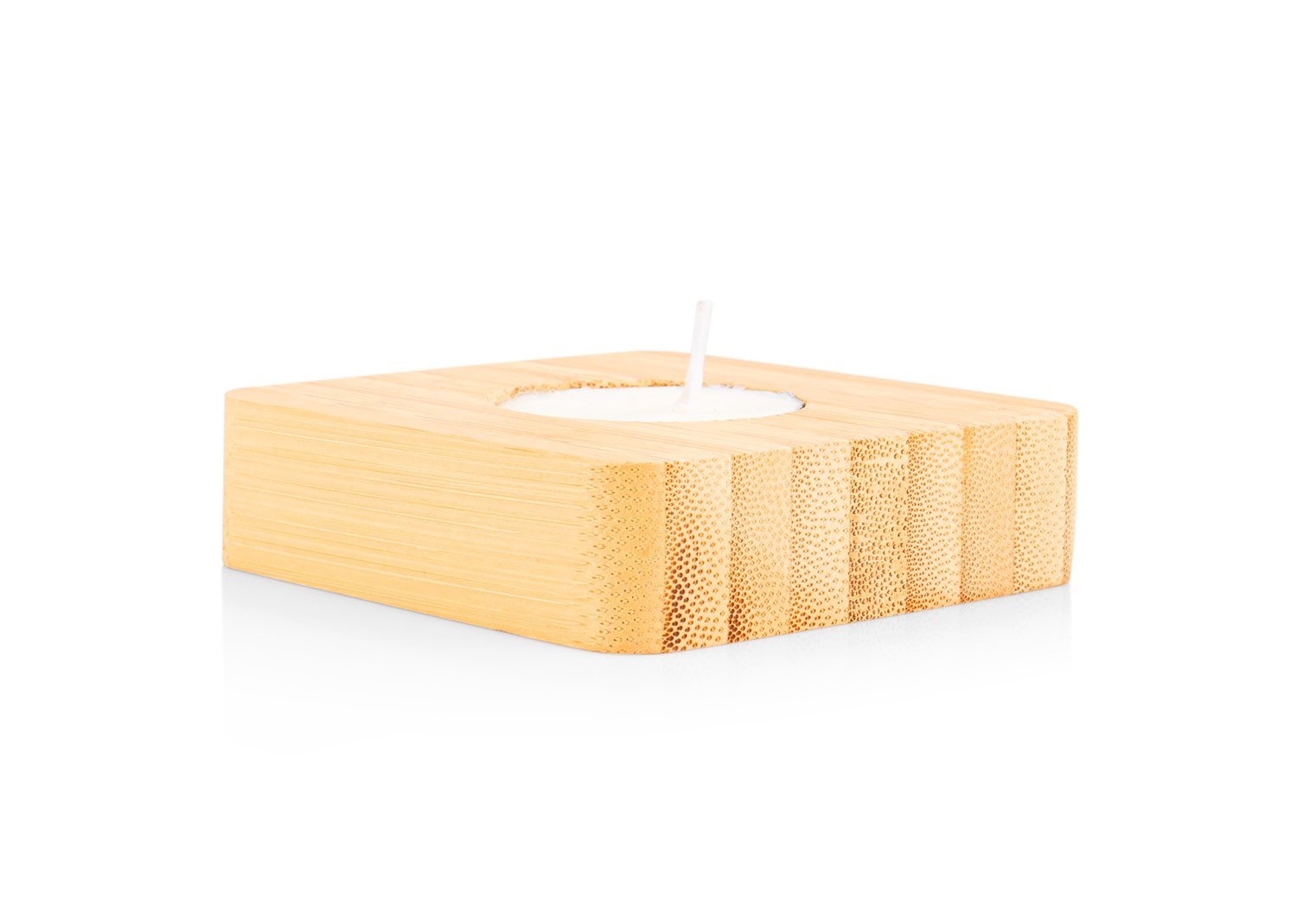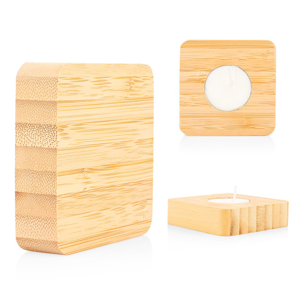 Accesorios de HogarElegante y funcional vela de color blanco. El portavelas de bambú es el complemento perfecto para crear ambientes acogedores y sofisticados. Su diseño es compacto y minimalista, fabricado en bambú ecológico. Cuenta con un inserto circular para colocar una vela tipo tealight (vela de aluminio pequeña), combinando funcionalidad y estética natural.