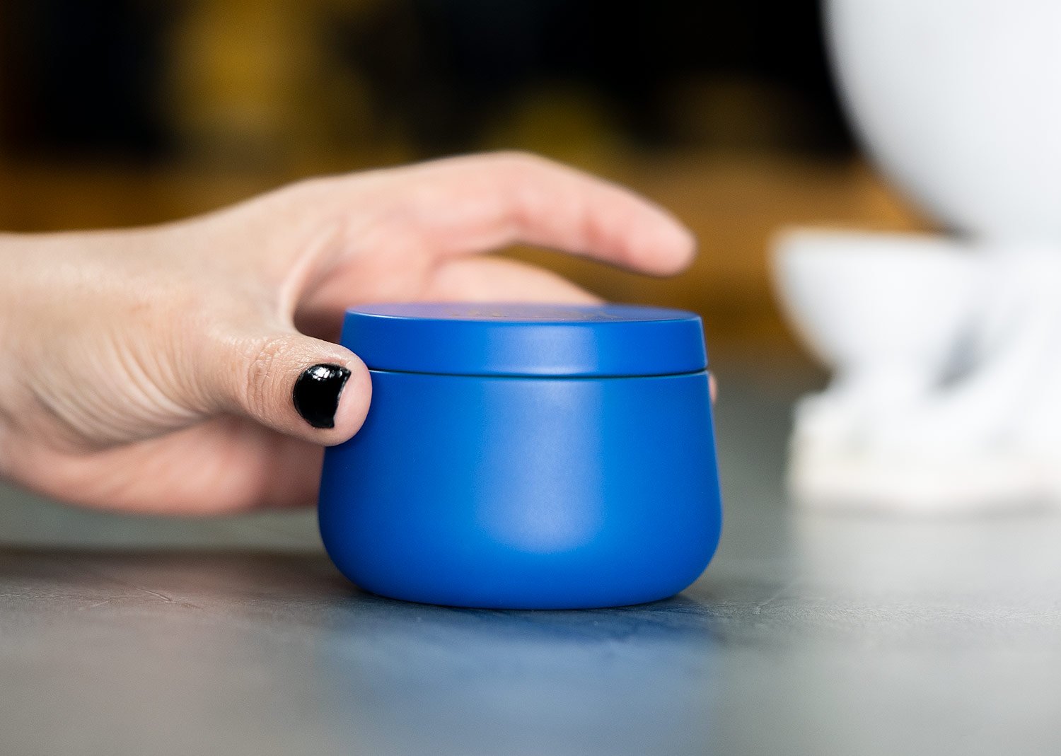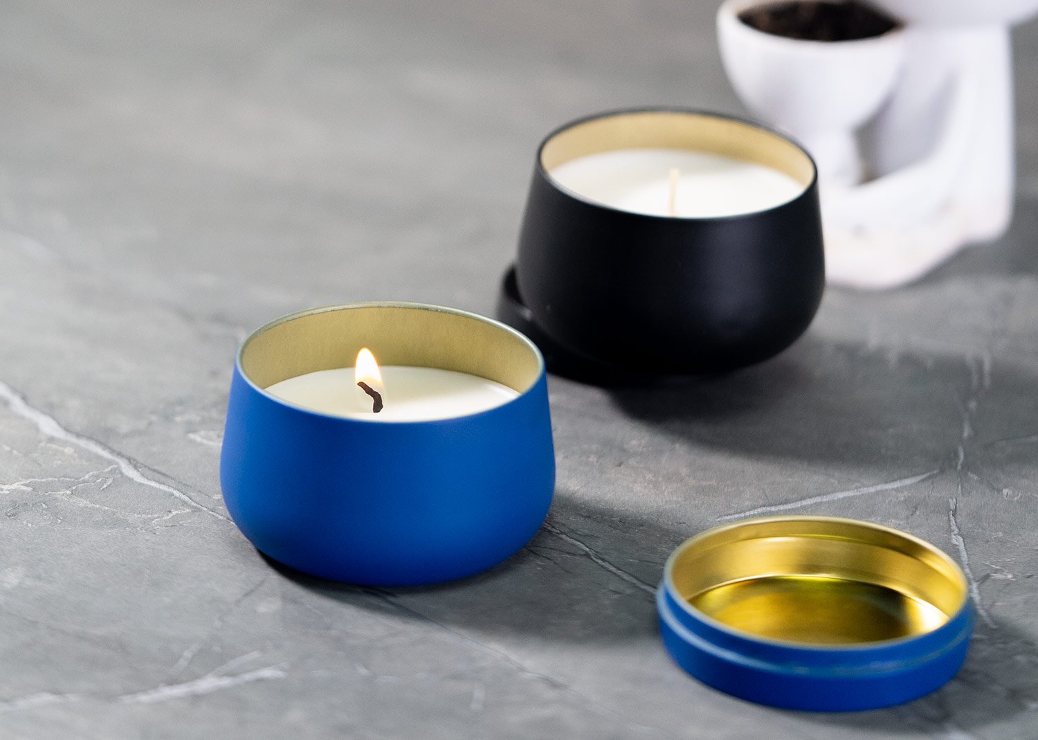 Vela aromatizada con olor a vainilla en envase metálico con tapa, 75 gramos.